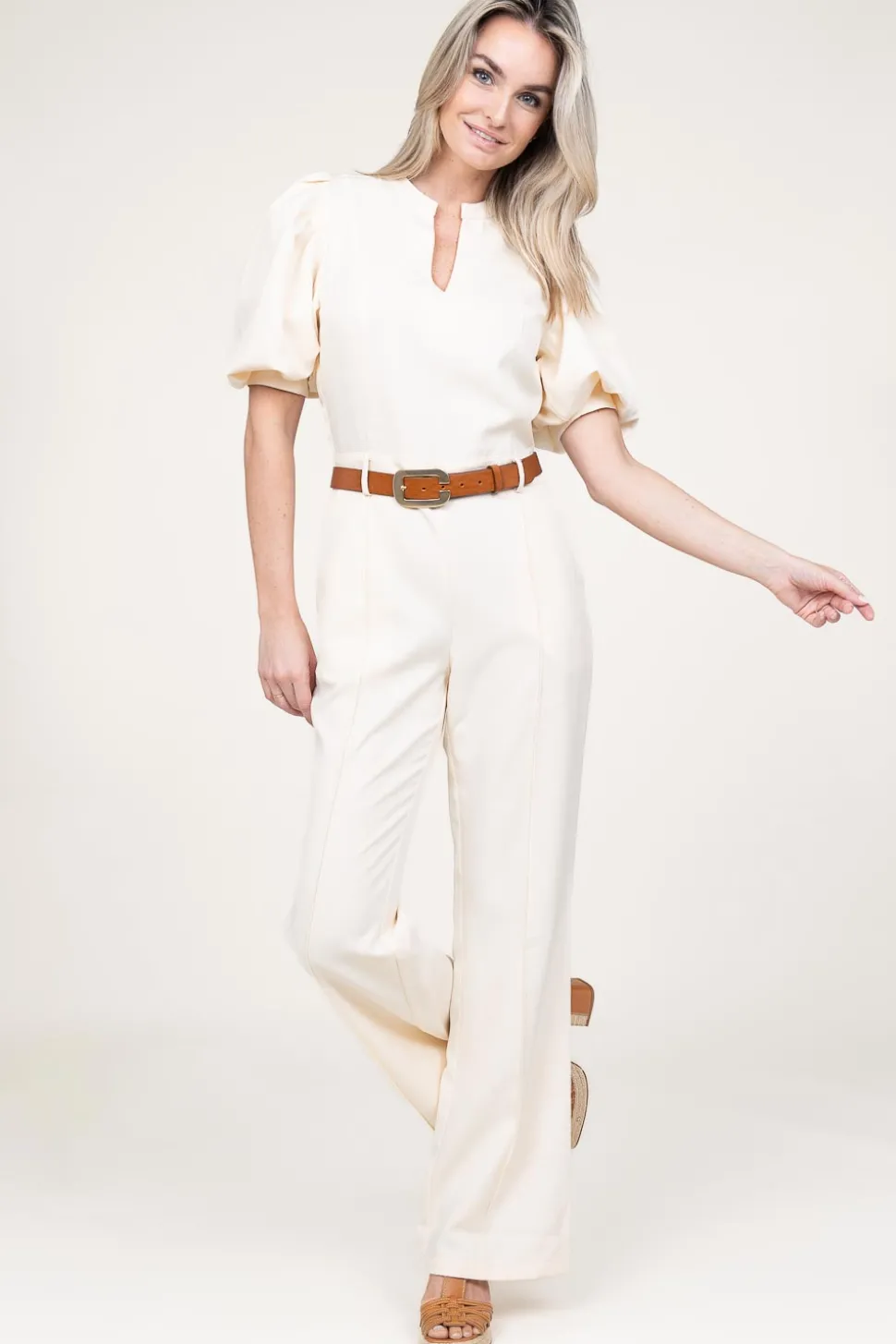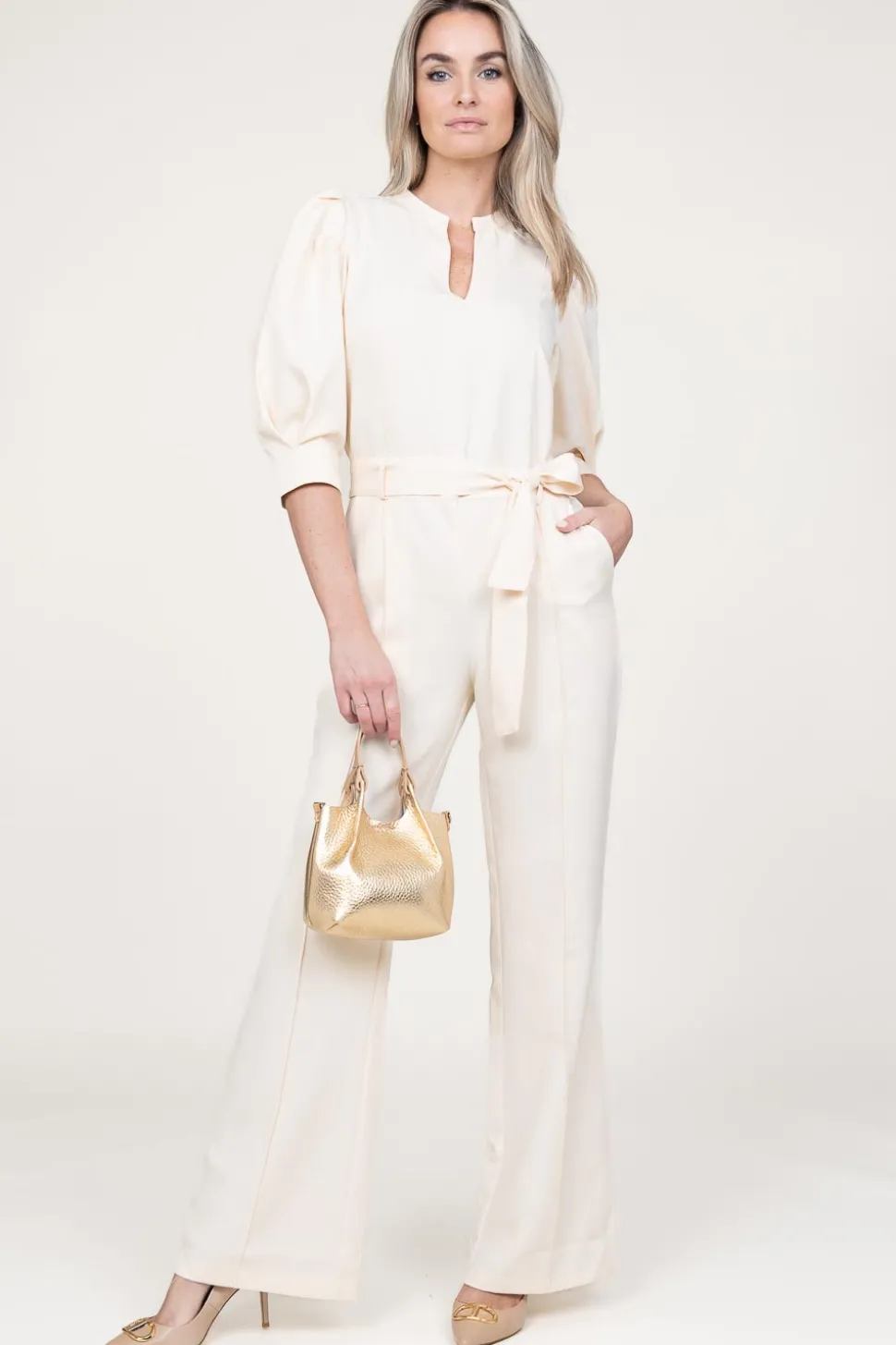 Outfit Stress Wear A Jumpsuitjumpsuit With Bow Beltv-Neckcloses With Button On The Backthree Quarter Puffed Sleeves With Cuffstwo Front And Back Pocketsbow Belt In Waistregular Fitcomposition97% Polyester, 3% Elastanewashing Instructions