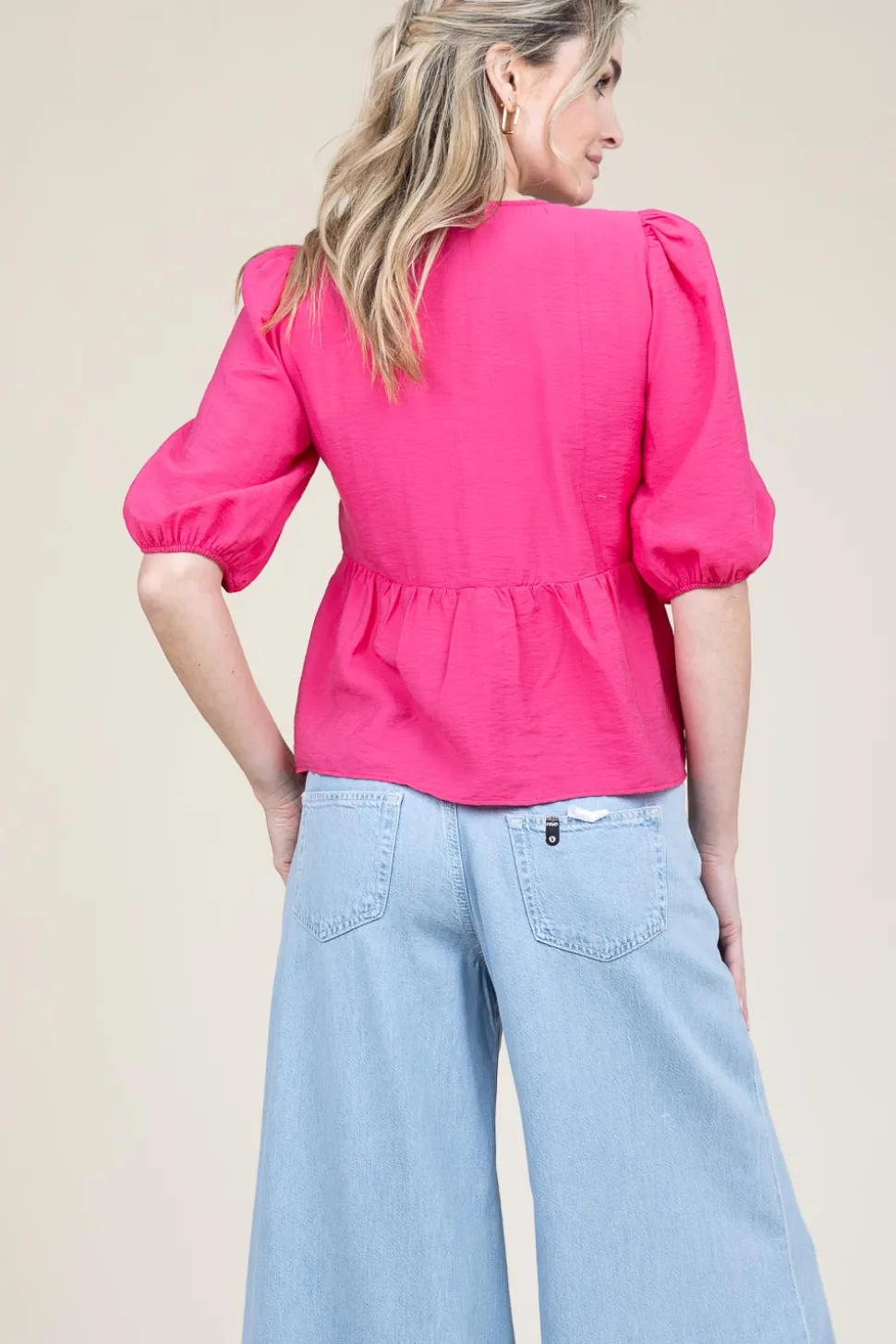Your New Favorite Topcr&Amp;Ecirc;Pe Topv-Neckshort Puffed Sleeves With Elastic Cuffsopen Detail On Frontregular Fitcomp…
