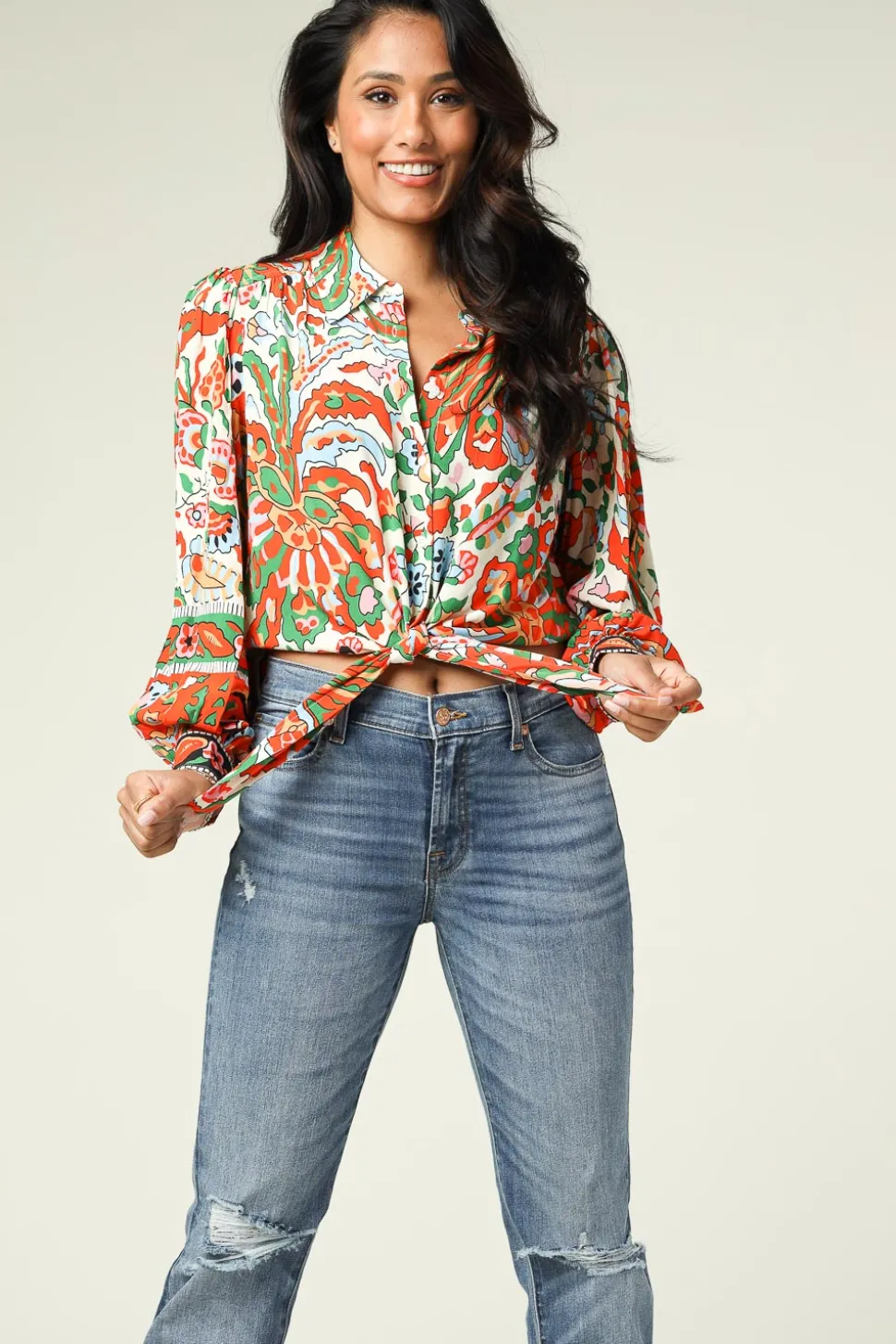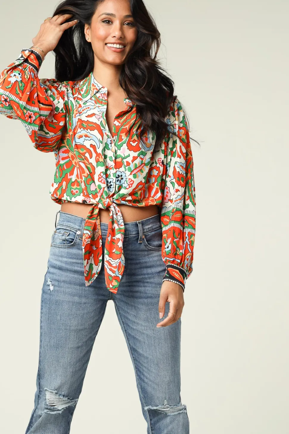 Best ba&sh Cropped Retro Print Blouse Martha | Orange… | | Little Soho