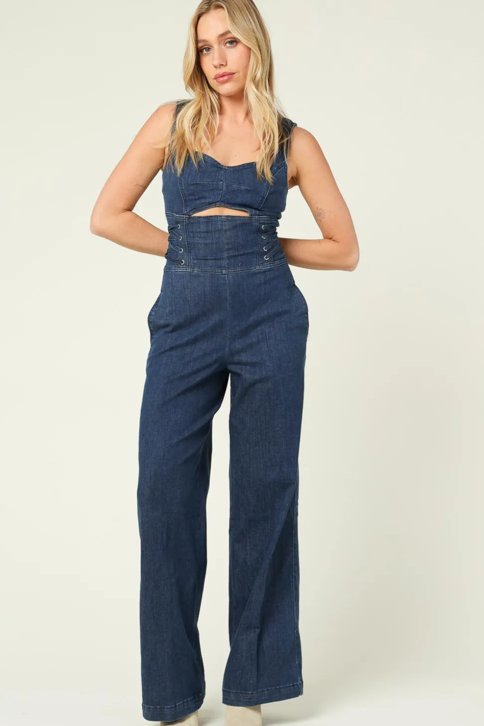 Outfit Stress Wear A Jumpsuitdenim Jumpsuit With Sweetheart Necklineadjustable Drawstrings At The Waistcloses With A Zip…