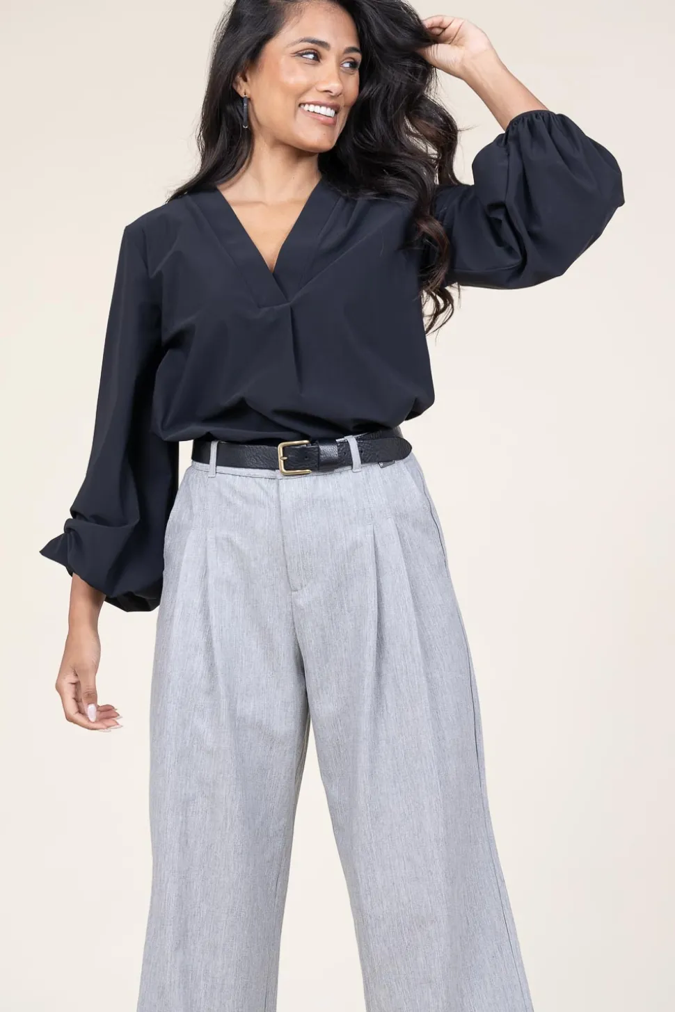 A True Essential!Travelwear Top With Puffed Sleevesv-Necklong Sleeves With Elastic Cuffsmade Of Wrinkle-Free Stretch Mat…