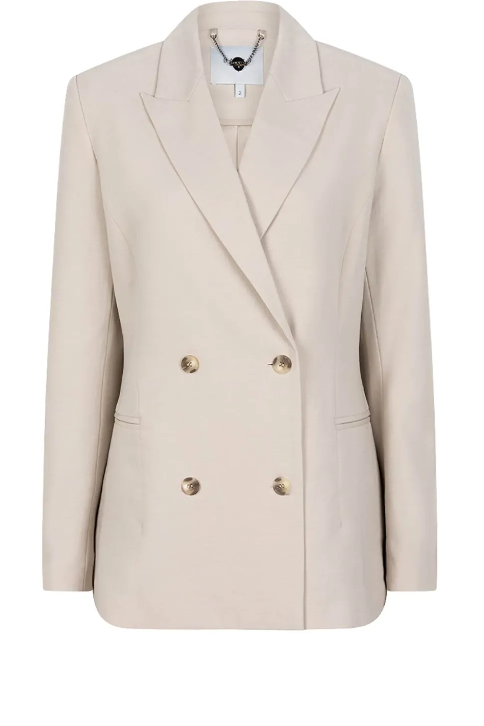 A True Essentialdouble Breasted Blazerlapel Collarlong Sleevesshoulderpaddingtwo Pocketscloses With Buttonspart Of A Mat…