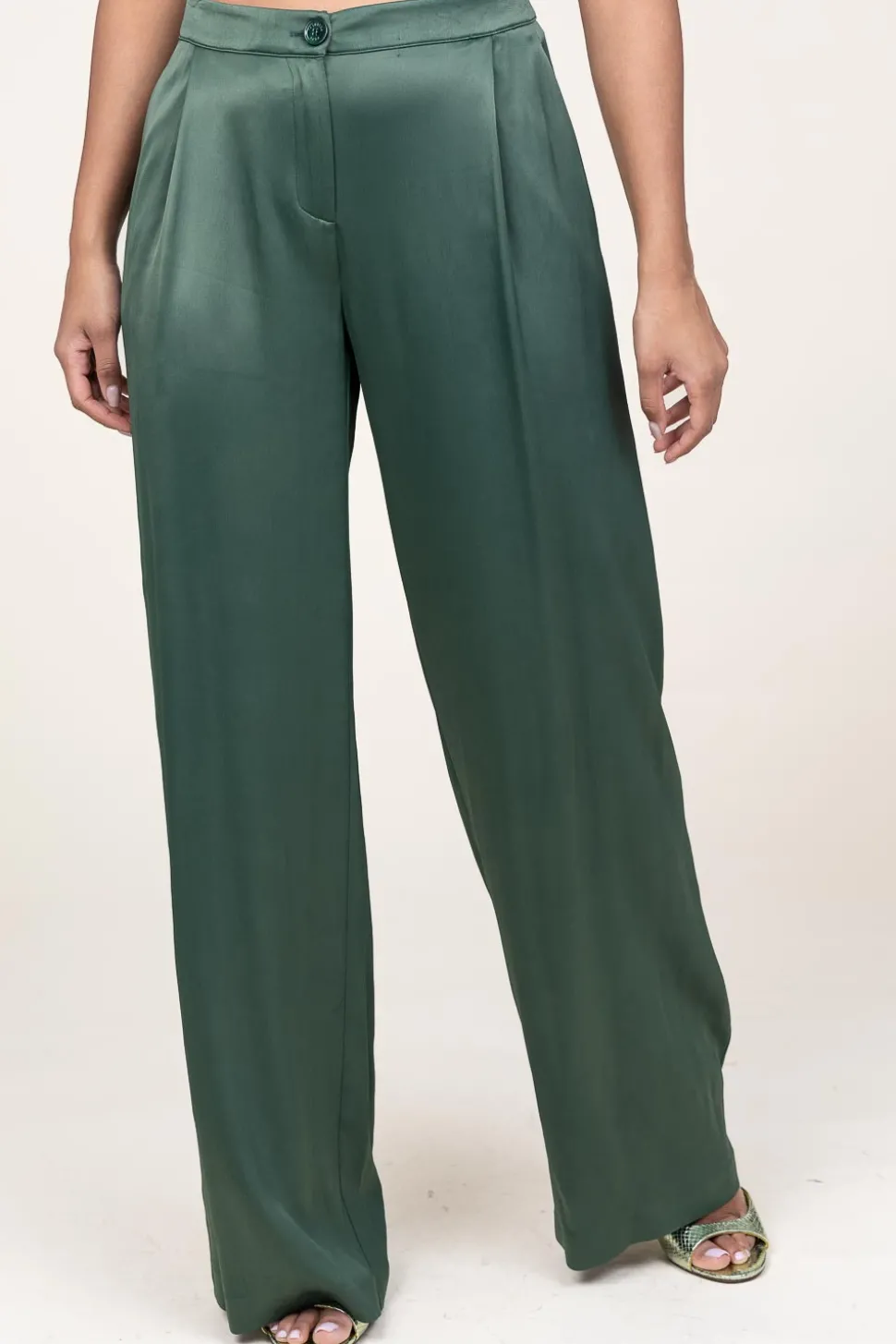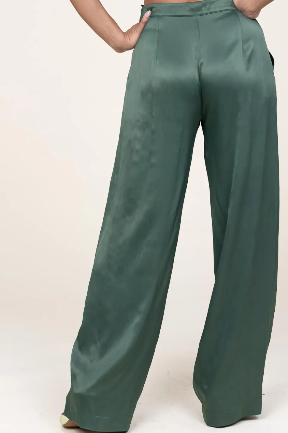 Best Sale Patrizia Pepe Satin Wide Leg Trousers Elena | Groen… | | Little Soho