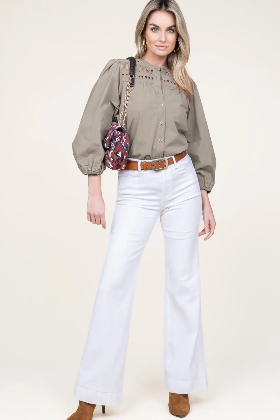 Your New Favorite Blouseblouse With Openwork Detailsround Necklong Puffed Sleeves With Elastic Cuffscloses With Buttonsr…