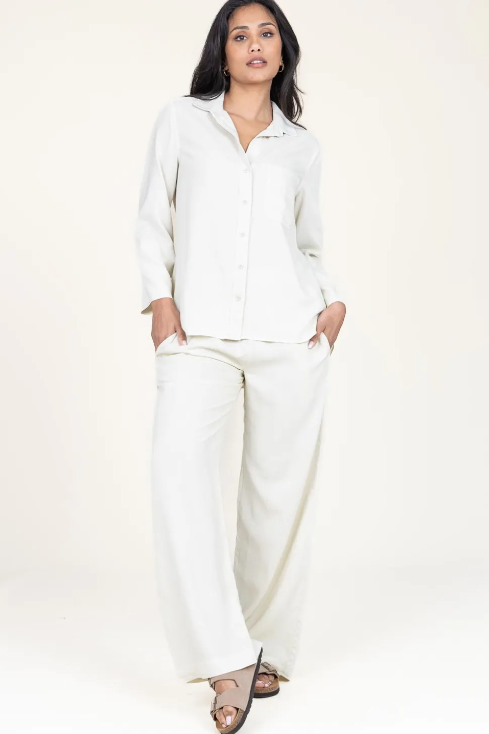 A True Essentialtencel Blouseshirt Collarthree Quarter Sleevesbreast Pocketcloses With Buttonssplits On The Sidespart Of A Matching Setloose Fitcomposition100% Tencelwashing Instructionsmachine Wash 30 Degrees