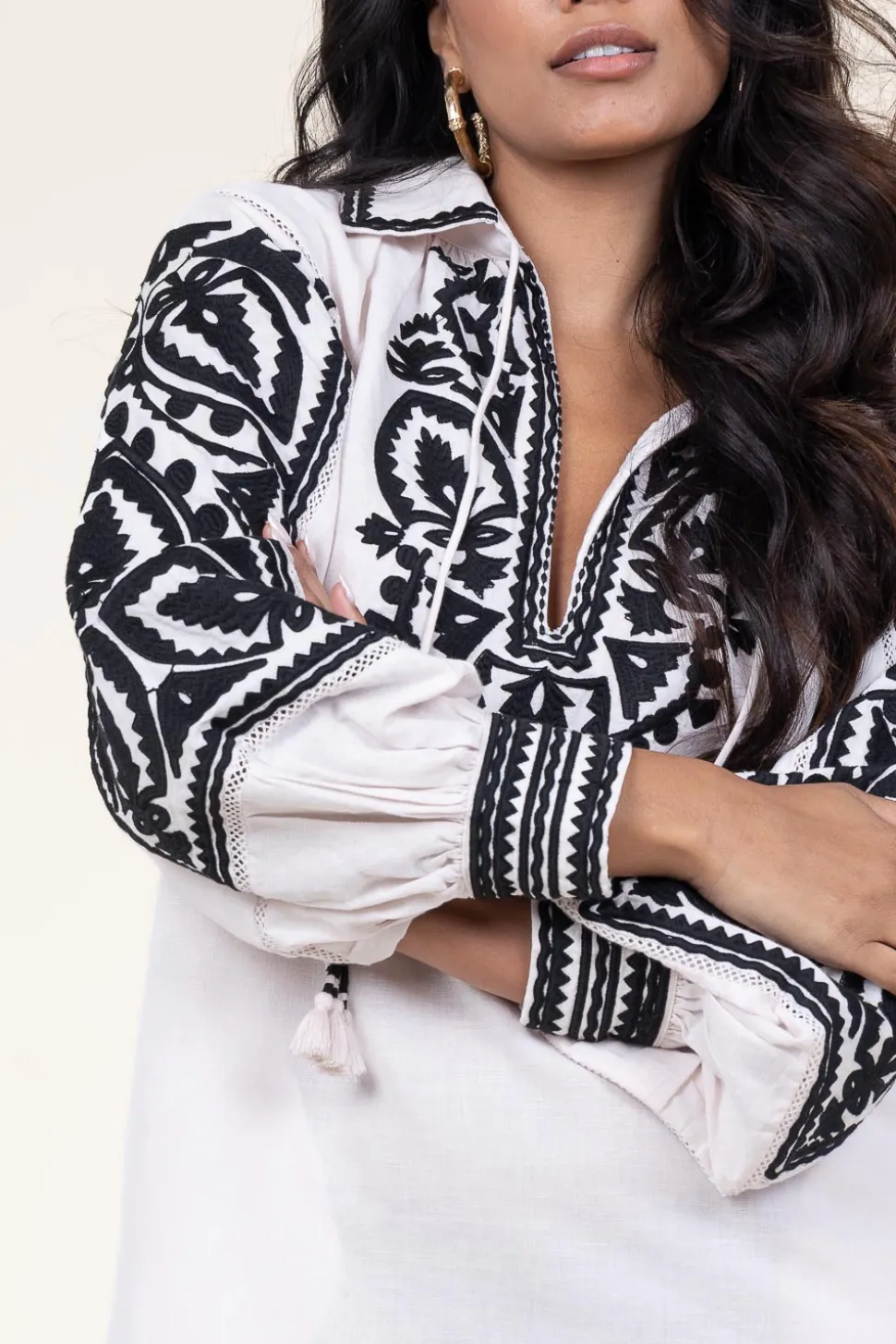 Your New Favorite Dressembroidery Linen Dressshirt Collar With Bow Detail And V-Necklong Puffed Sleeves With Cuffsmaxi Lengthregular Fitcomposition50% Cotton, 50% Linenwashing Instructionsmachine Wash