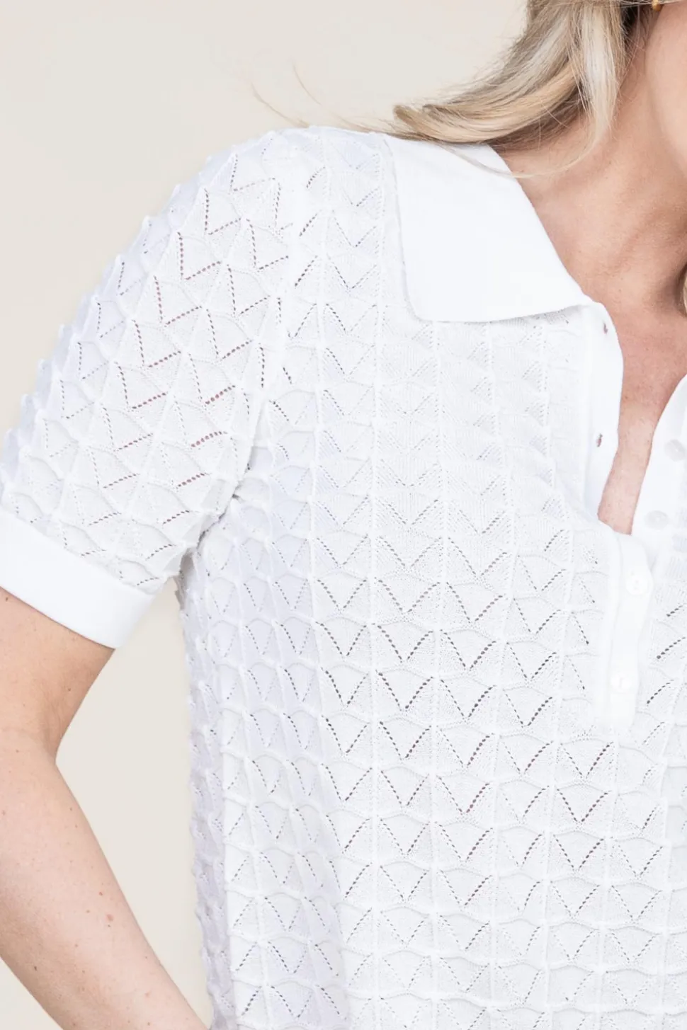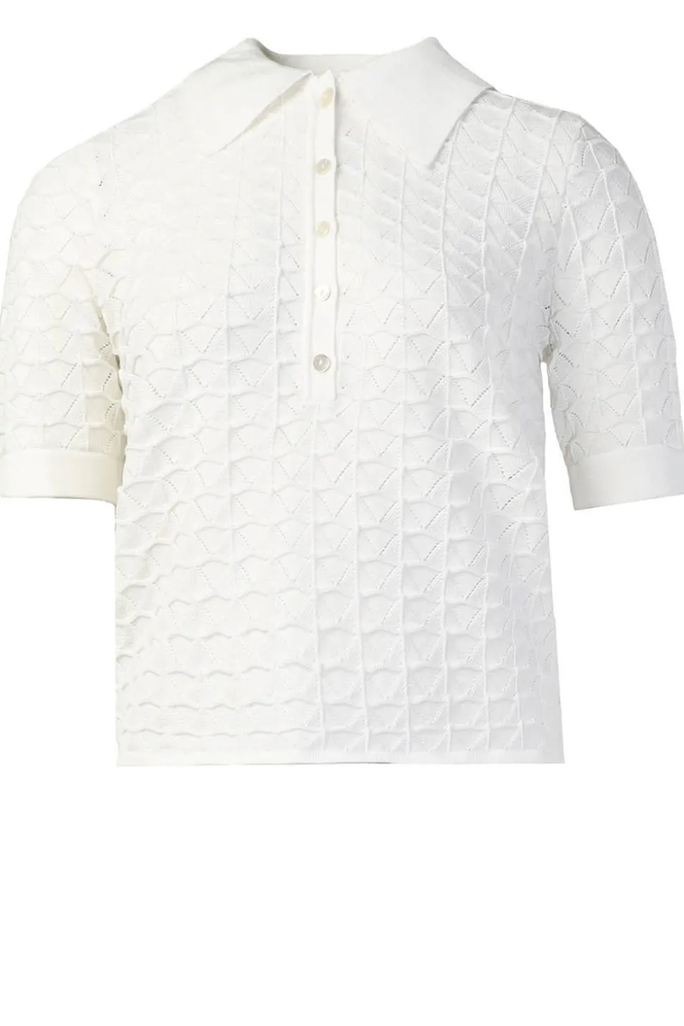 A True Essentialajour Topshirt Collarshort Sleeves With Ribbed Cuffscloses With Buttonsopenwork Detailsregular Fitcompos…