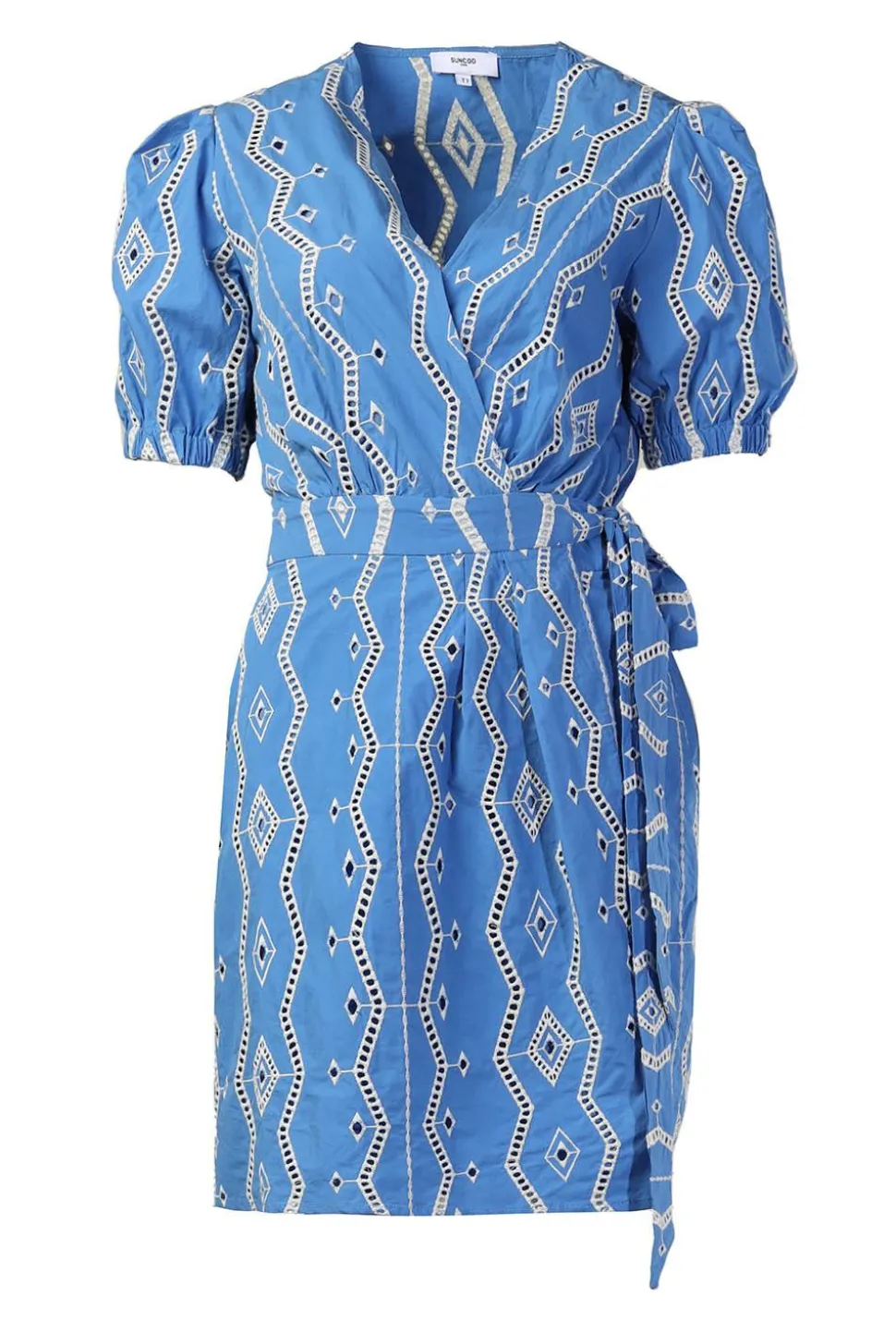 A True Eyecatcherembroidery Dressv-Neckshort Sleeves With Elastic Cuffsmini Lengthbow Belt&Amp;Nbsp;Linedregular Fitcomp…