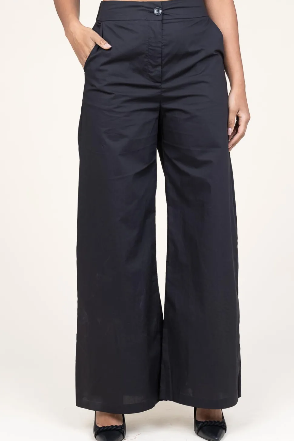 Clearance Suncoo Poplin Wide Leg Trousers Johan | Black… | | Little Soho