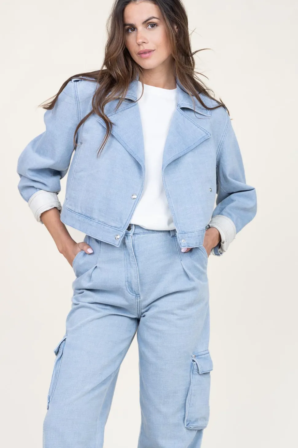 Discount IRO Denim Biker Jacket Omaj | Blue… | | Little Soho