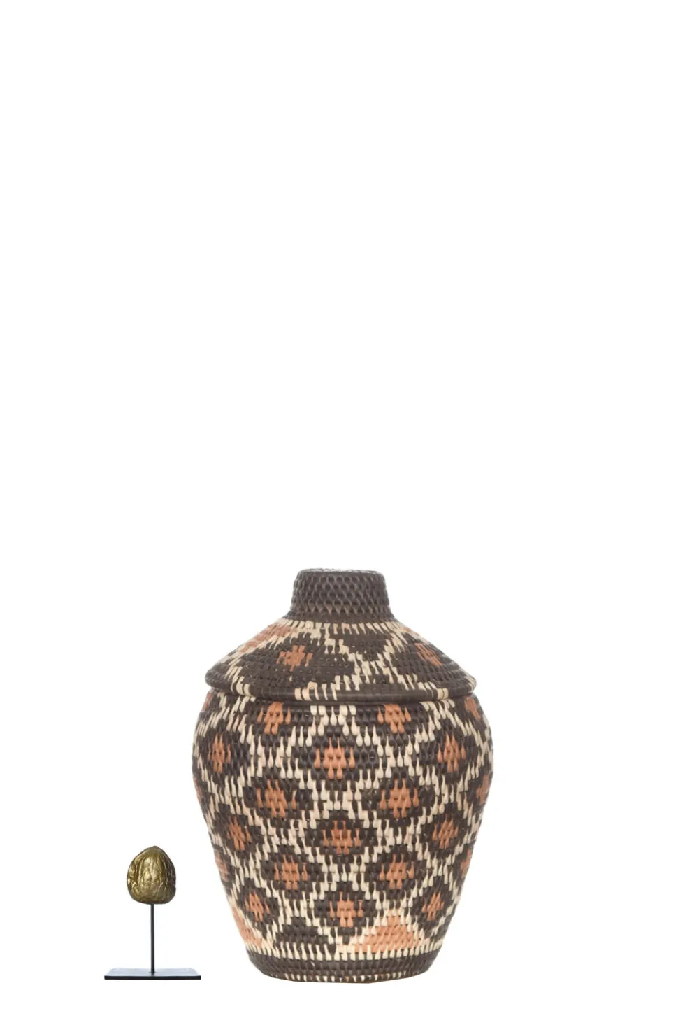 This Unique Basket By Little Soho Comes In A Stylish Print And Is Handmade Of Rattan. Thanks To Its Neutral Colours This Stylish Home Accessory Can Be Combined With Other Items Easily. Hand Made Of Woven Rattan Has A Stylish Print Comes With A Lid Material: Rattan Height: 29 Cm, Circumference: 65 Cm