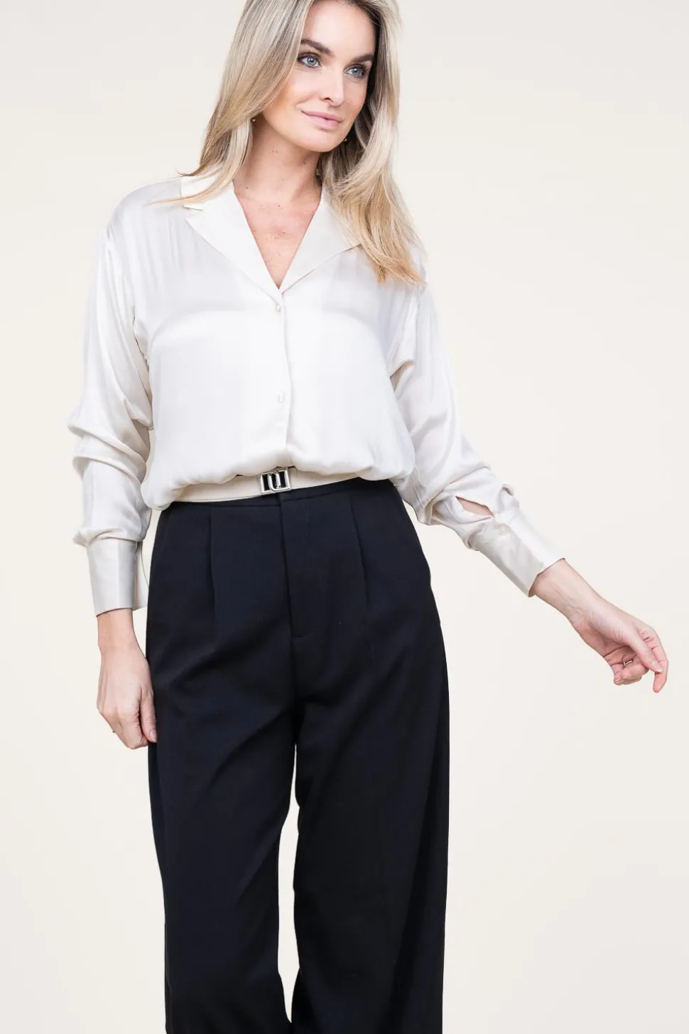 Your New Favorite Blousesilk Blouselapel Collarlong Sleeves With Cuffscloses With Buttonselastic Waistband With Drawstri…
