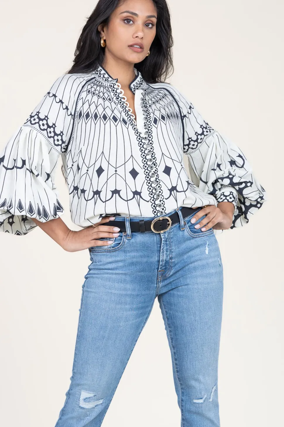 Your New Favorite Blouseblouse With Printround Necklong Puffed Sleeves With Elastic Cuffscloses With Buttonsloose Fitcomposition55% Linen, 45% Cottonwashing Instructionshand Wash