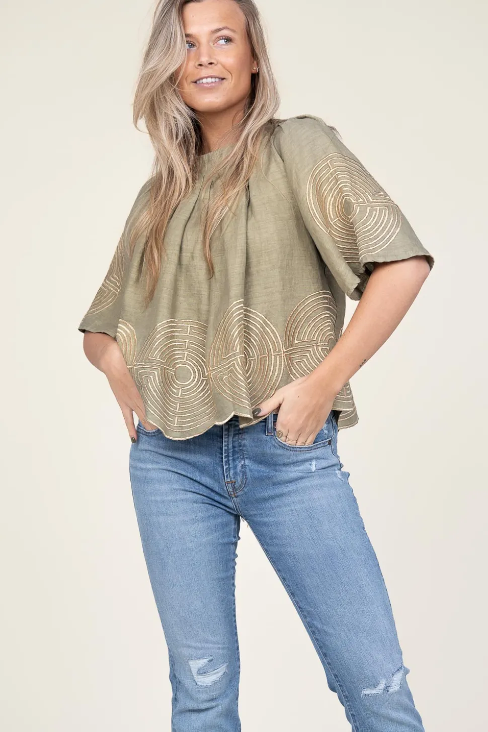 Flash Sale Greek Archaic Kori Top With Labyrinth Embroidery Kaat | Green… | | Little Soho