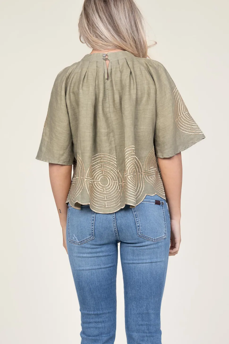 Your New Favorite Toptop With Labyrinth Embroideryround Neckshort Flared Sleevescloses With Buttons On The Backregular Fitcomposition100% Linenembroidery: 100% Polyesterwashing Instructionshand Wash