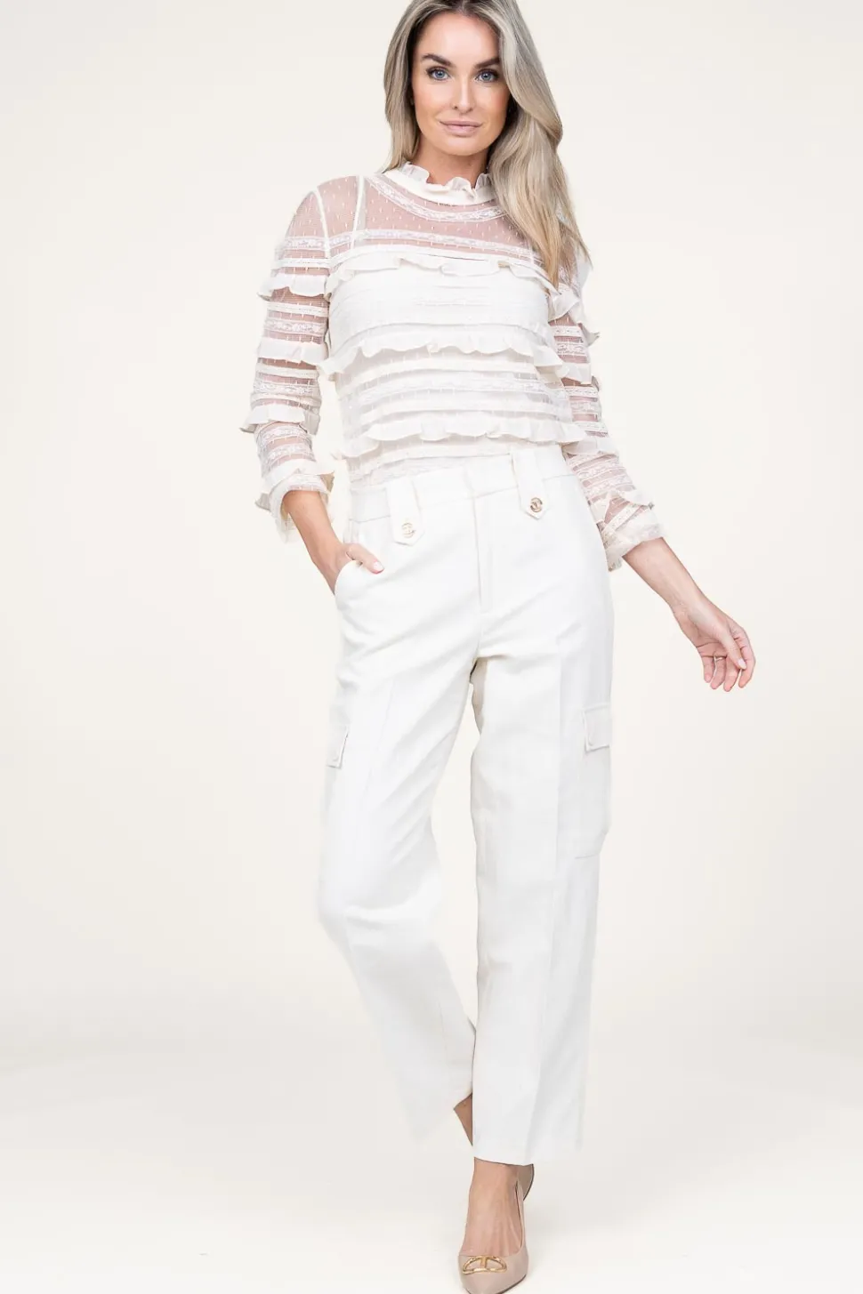 Hot Twinset Luxe Mesh Top With Ruffles Danique | Natural… | | Little Soho