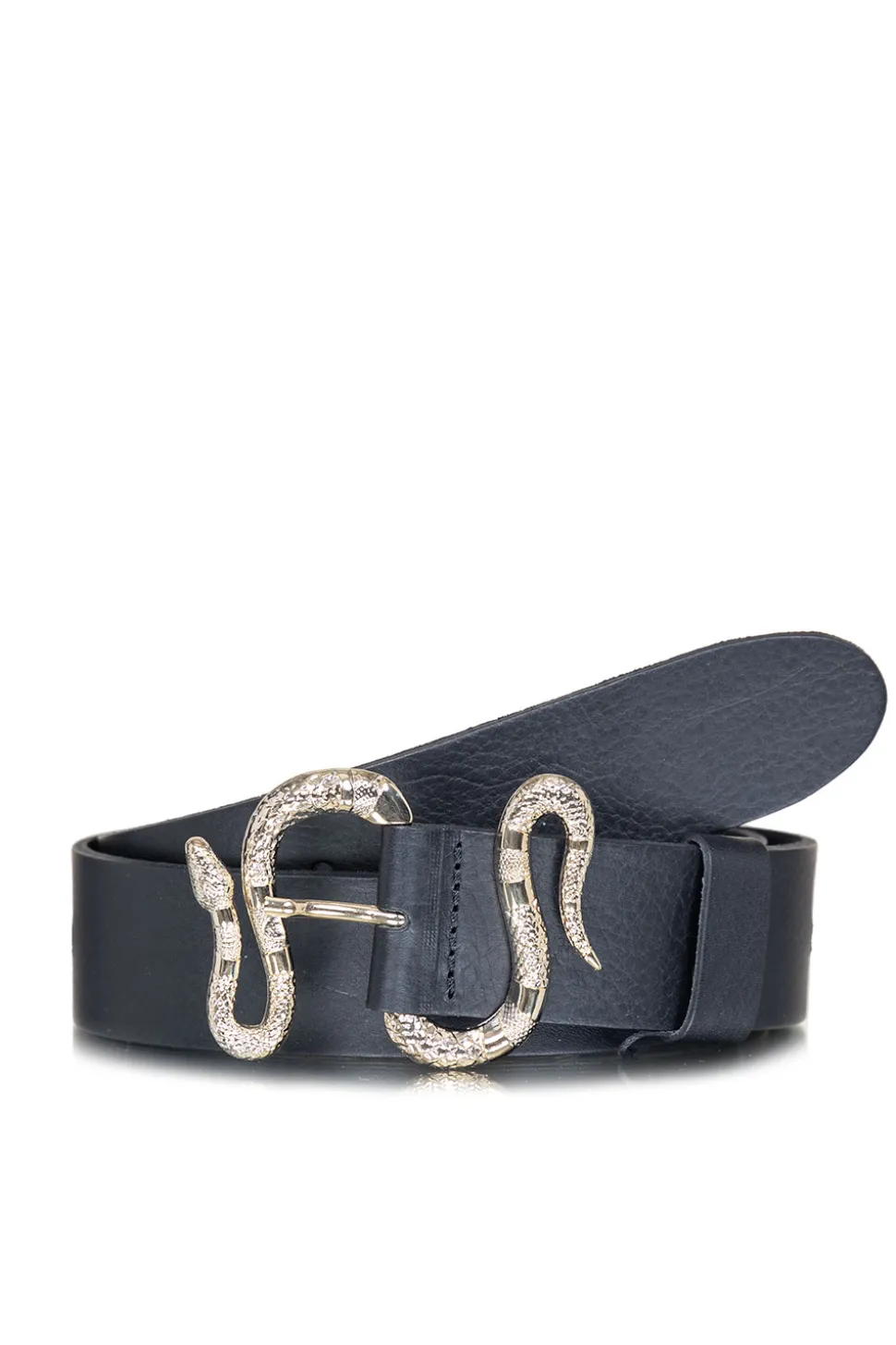 New Depeche Leather Belt With Snake Buckle Snake | Black… | | Little Soho