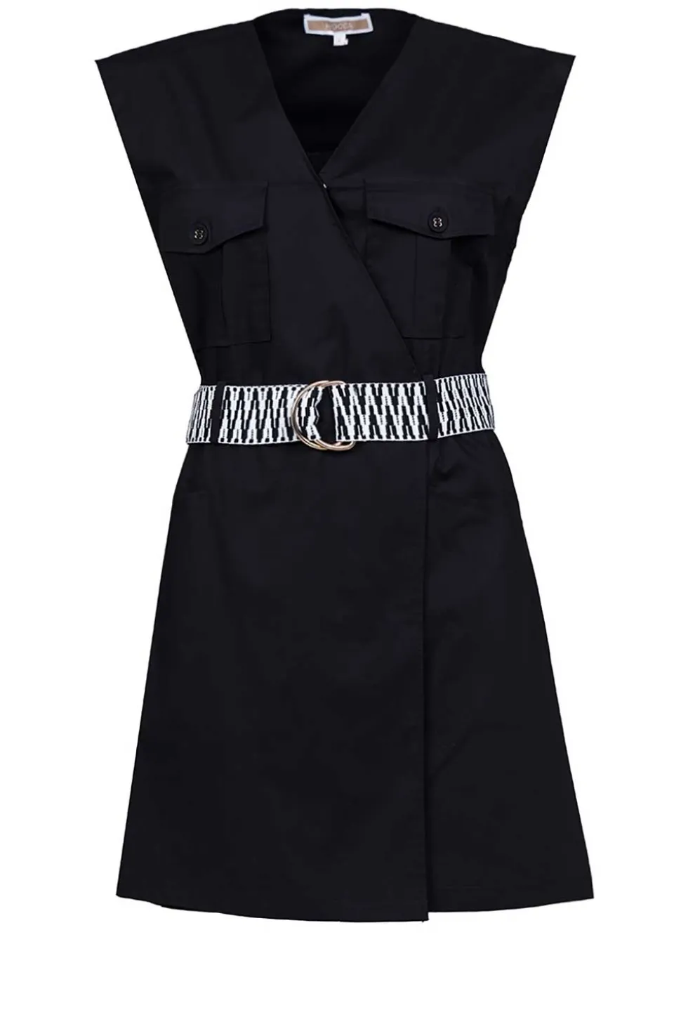 New Kocca Belted Poplin Dress Relmarr | Black… | | Little Soho
