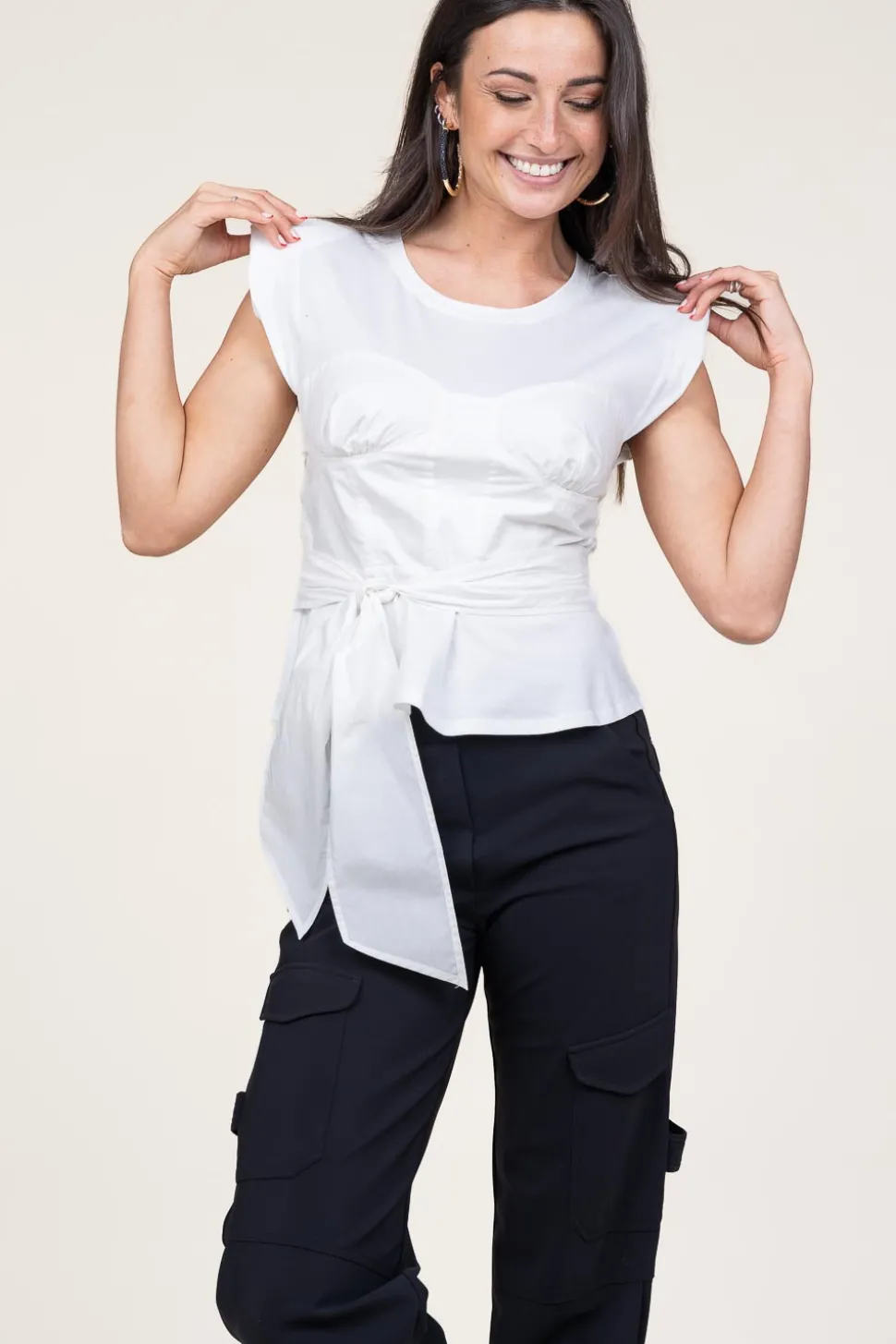 A True Essentialcotton Bustier Wrap Topround Necksleeveless With Shoulder Padding&Amp;Nbsp;Gold Colored Closure&Amp;Nbsp;Regular Fitcomposition100% Cottonwashing Instructionsdry Cleaning