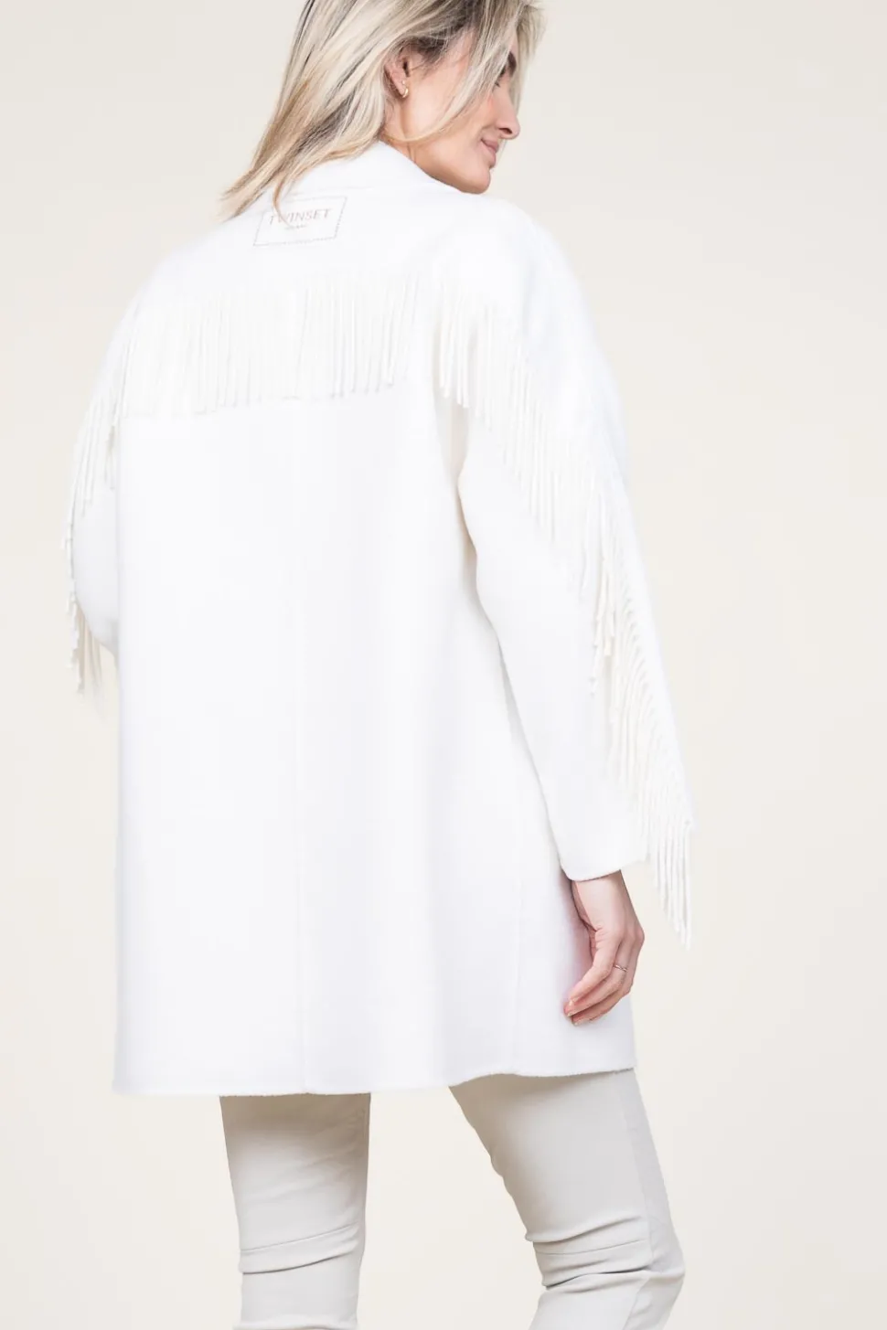 New Twinset Woolen Coat With Frills Grace | Natural… | | Little Soho