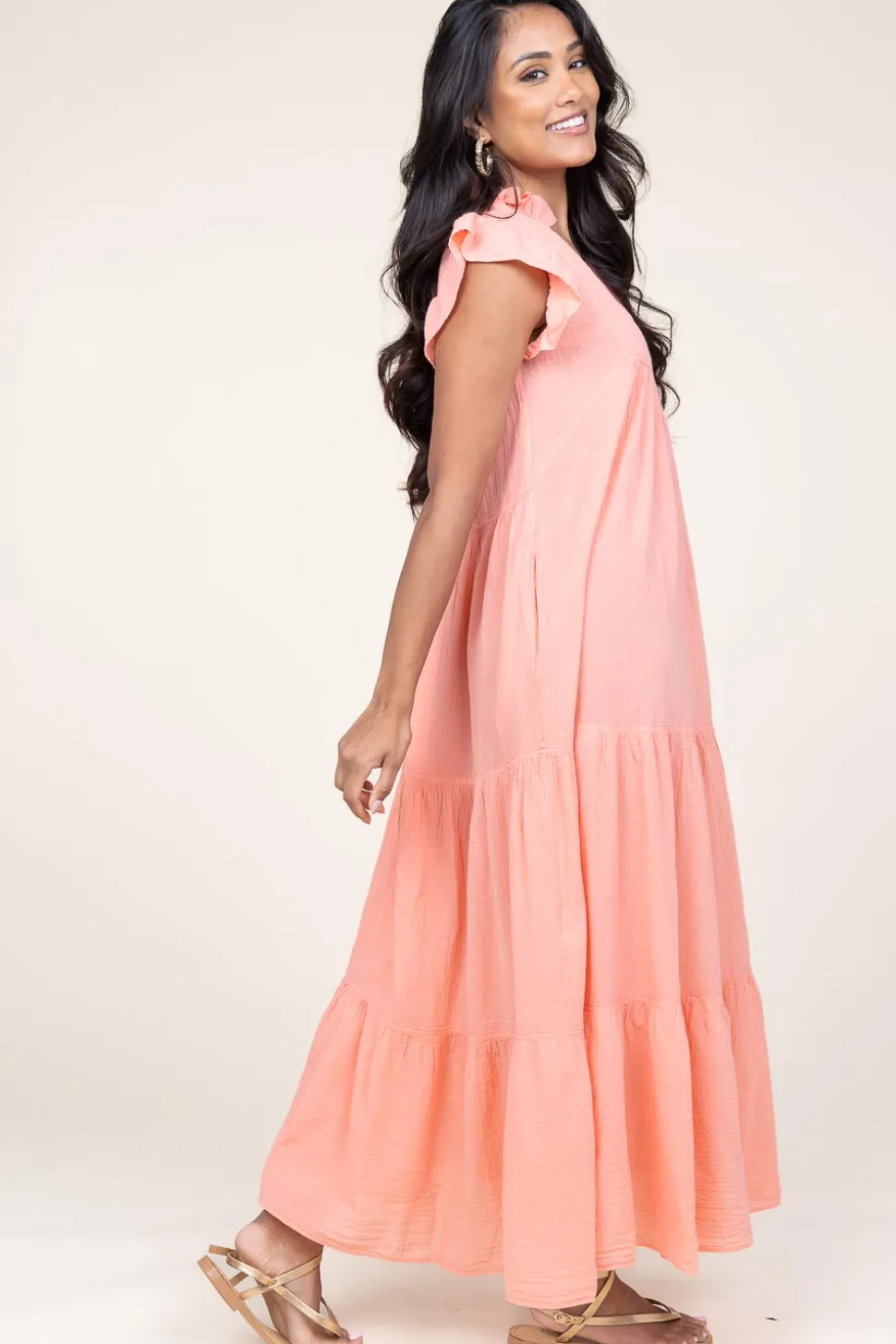 Your New Favorite Dresscotton Maxi Dressv-Neck With Rufflesshort Sleeves With Ruffleslayered Skirtregular Fitcomposition…