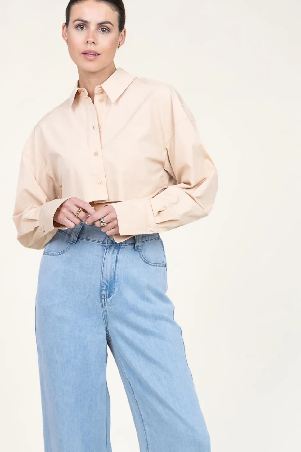 Your New Favorite Blousecropped Poplin Blouseshirt Collarlong Sleeves With Cuffscloses With Buttonscropped Fitcompositio…