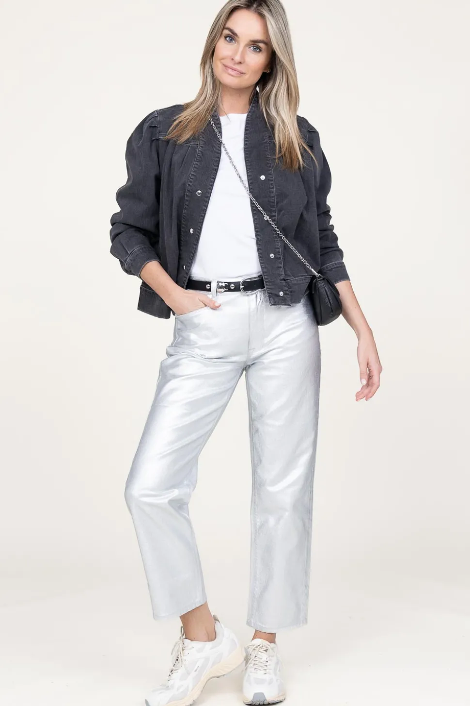 Sale Dante 6 Metallic Cropped Jeans Axelle | Silver… | | Little Soho