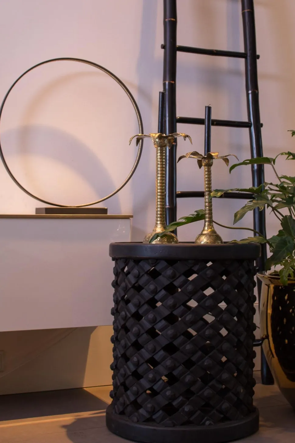 Enrich Your Interior With This Unique Side Table By Little Soho! The Piece Of Furniture Has A Round Surface That Can Be Used As A Decor For All Kinds Of Stylish Accessories. Wooden Side Table The Middle Part Has A Braided Effect Has A Round Surface Material: Wood Height: 60 Cm, Diameter: 49 Cm