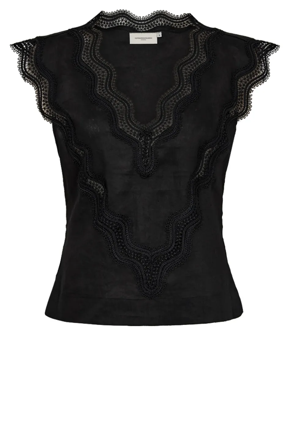 Shop Copenhagen Muse Linen Lace Top Natuli | Black… | | Little Soho