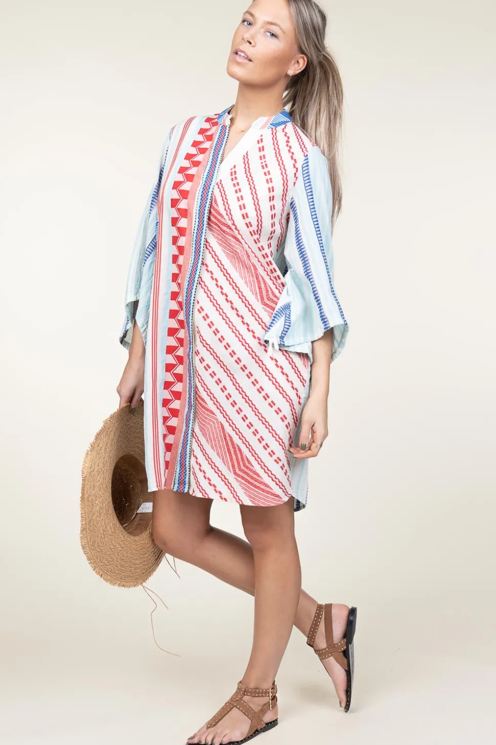 Eyecatcher Alert!Jacquard Tunic Dressv-Necklong Sleeves With Elastic Cuffsmidi Lengthregular Fitcomposition100% Cottonwa…