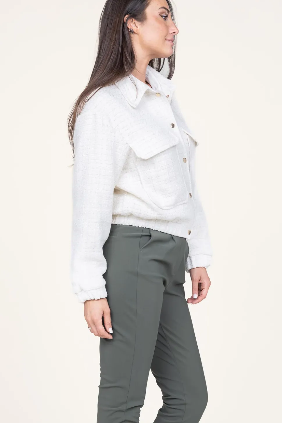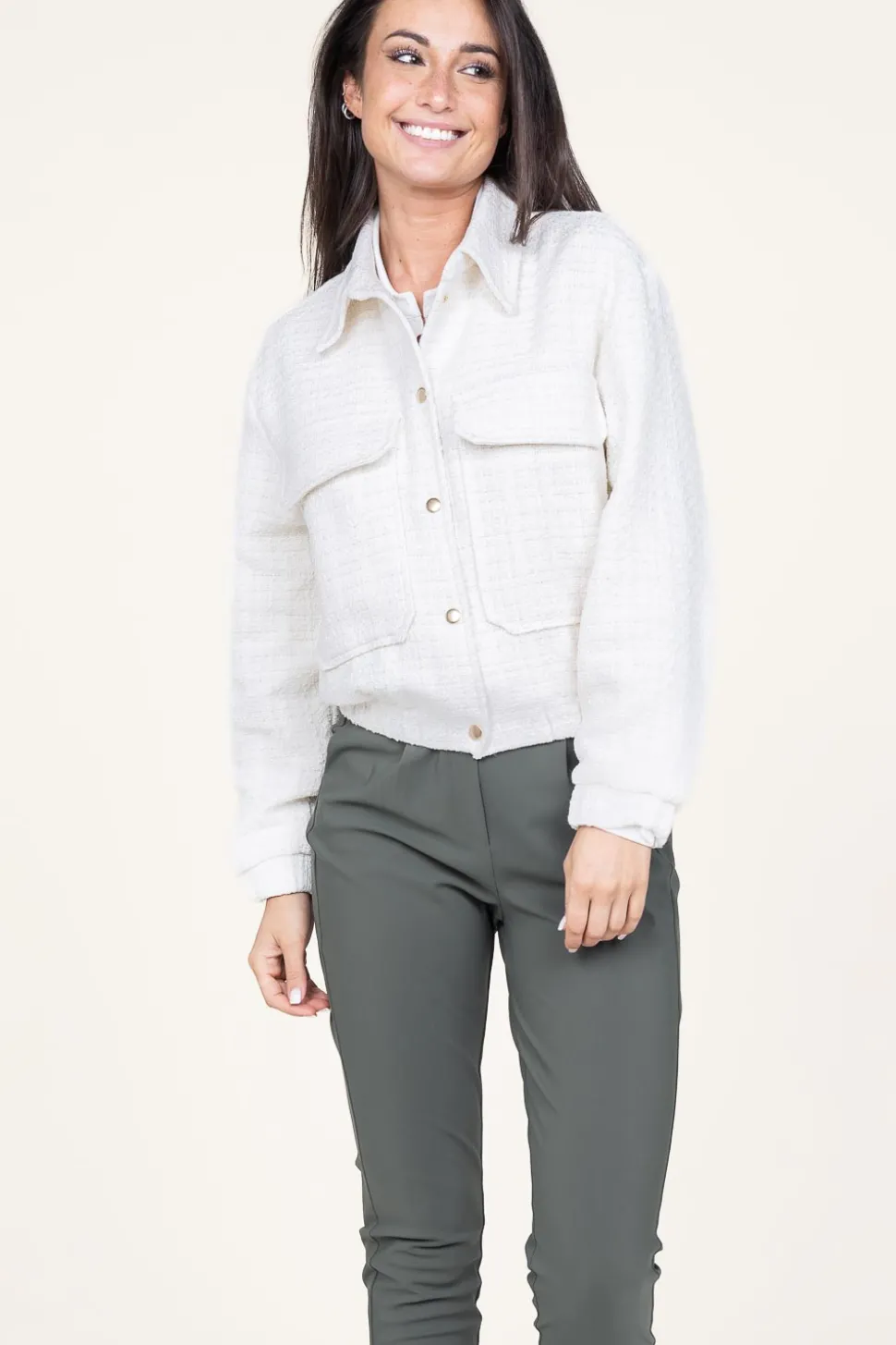 A True Essentialboucl&Amp;Eacute; Lurex Bombershirt Collarlong Sleeves With Elastic Cuffstwo Breast Pocketselastic Waistbandcloses With Buttonspart Of A Matching Setregular Fitcomposition42% Acryl, 42% Polyester, 15% Cotton, 1% Metallicwashing Instructionsdry Cleaning