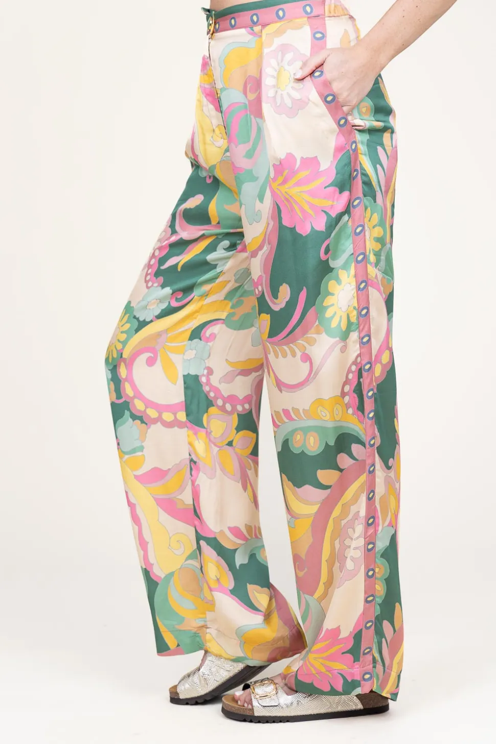 Eyecatcher Alert!Satin Viscose Pants With Printcloses With Button And Hidden Zipperelastic Waistbandtwo Slanted Pocketsw…