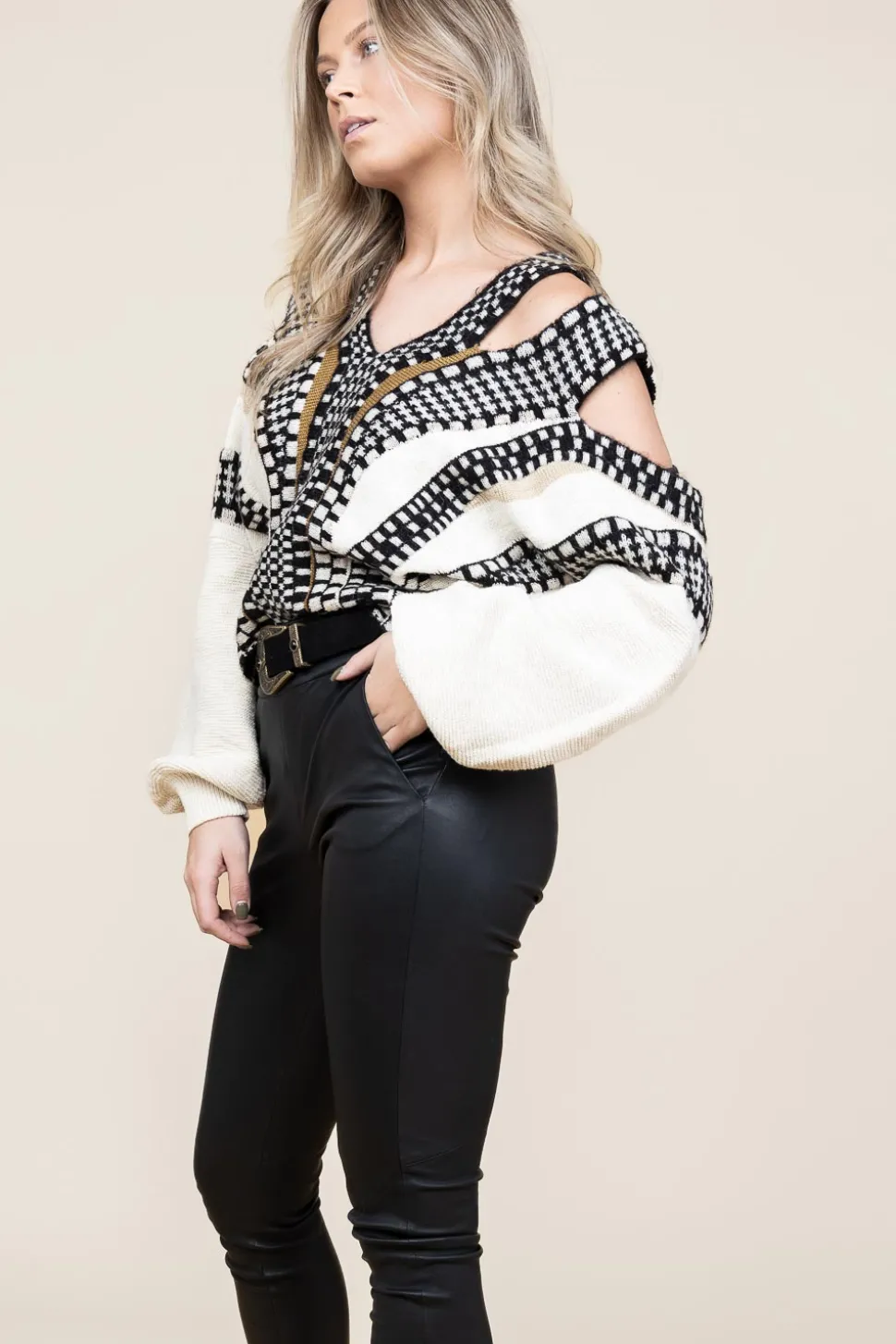 Comfy &Amp;Amp; Stylishknitted Sweater With Cut-Outsv-Necklowered Long Sleeves With Cuffscut-Outs At Neck And Shouldersr…