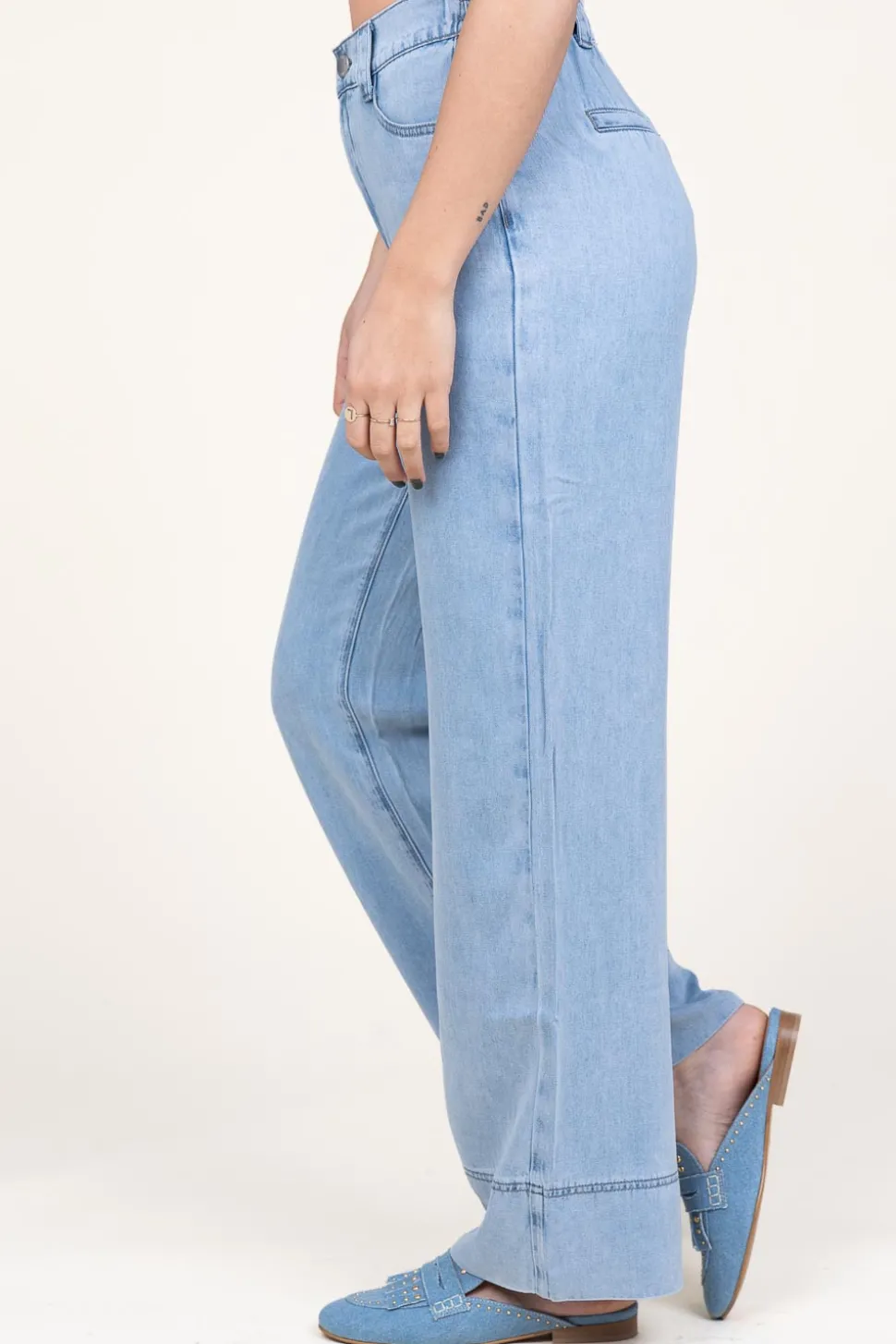 A True Essentialtencel Wide Leg Denim Pantscloses With Button And Hidden Zippertwo Front And Back Pocketsbelt Loopsloose…