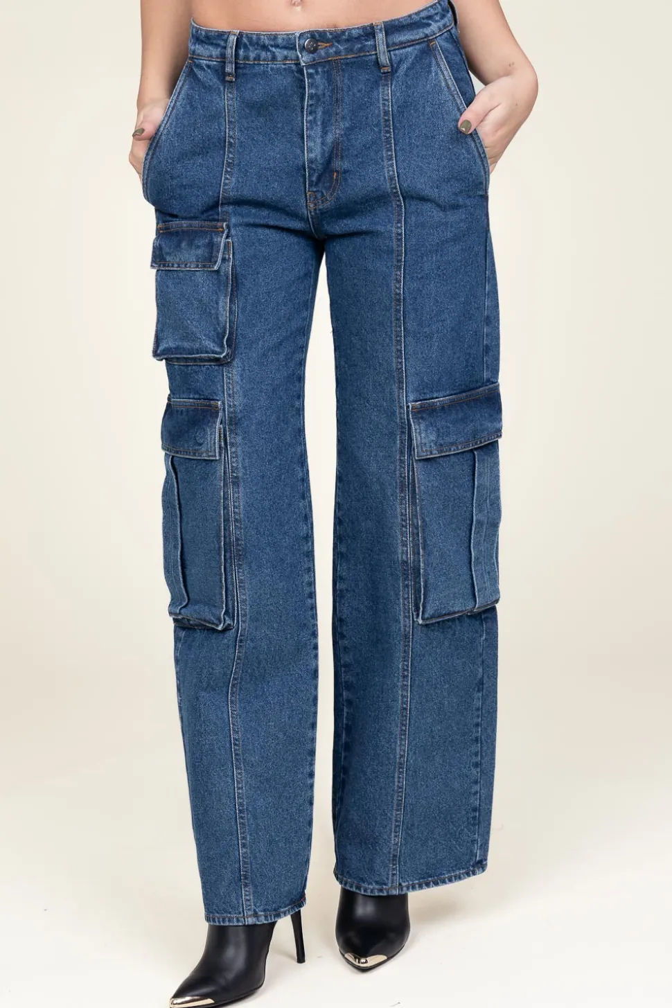 Denim Is Always A Good Idea!Cotton Denim Cargo Pantscloses With Button And Hidden Zippertwo Front And Back Pocketsregula…