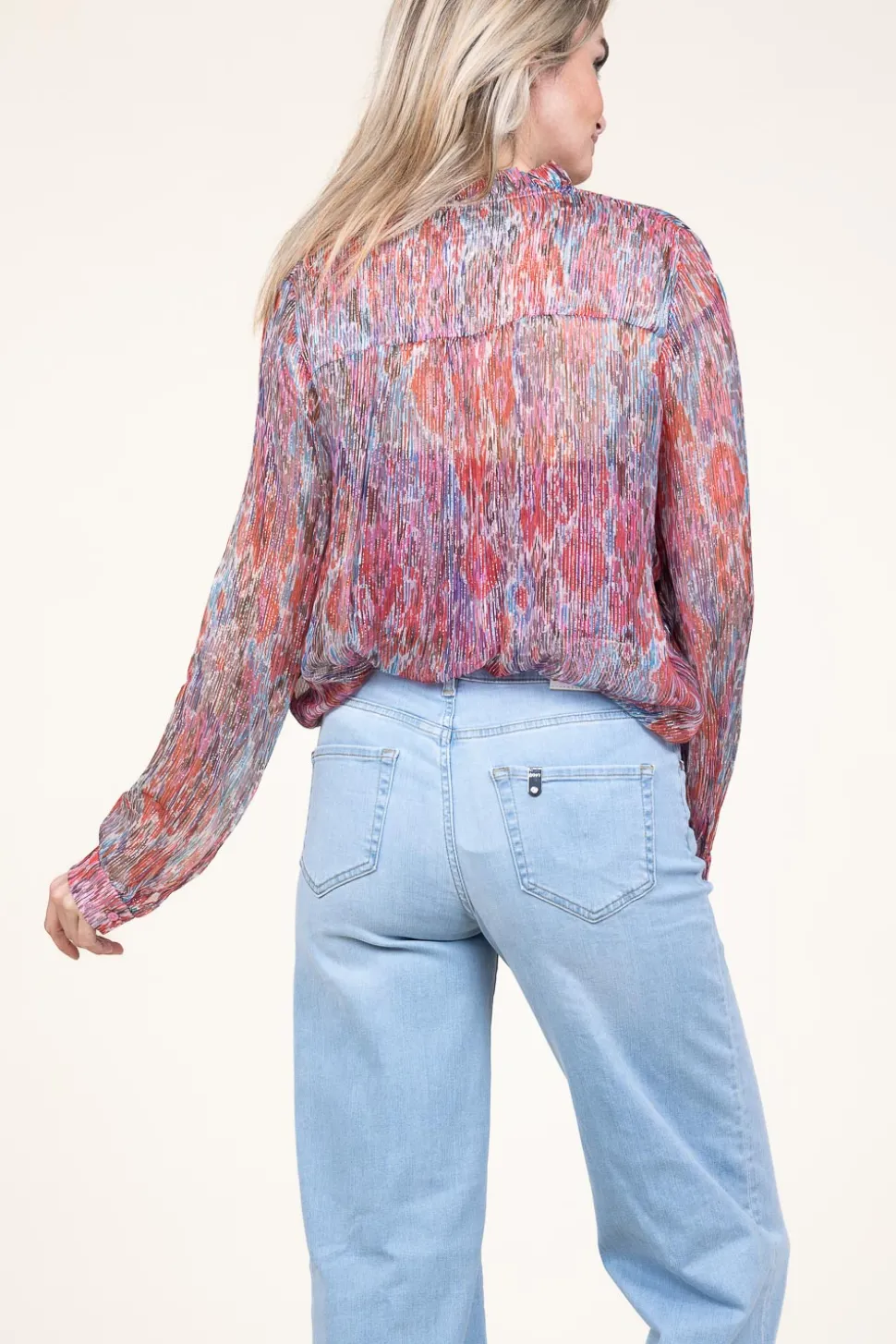 Eyecatcher Alert!Lurex Blousev-Neck With Ruffleslong Sleeves With Cuffssee-Through Fabriccloses With Buttonsregular Fitcomposition95% Viscose, 5% Metallicwashing Instructionshand Wash