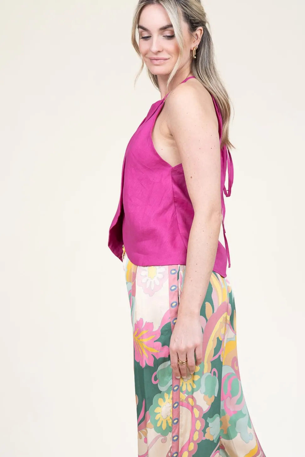Best Sale Greek Archaic Kori Linen Halter Top Pam | Pink… | | Little Soho