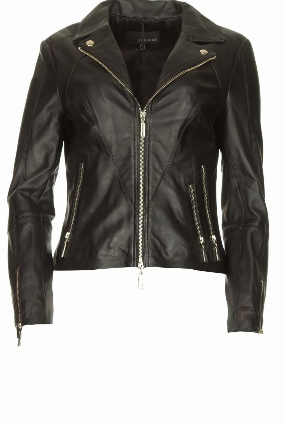 Best Sale STUDIO AR Leather Biker Jacket With Zip Details Cherry | Black… | | Little Soho