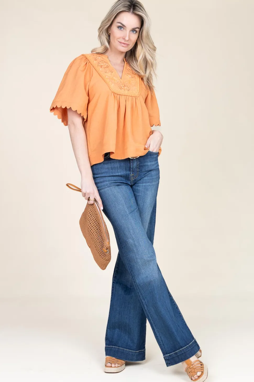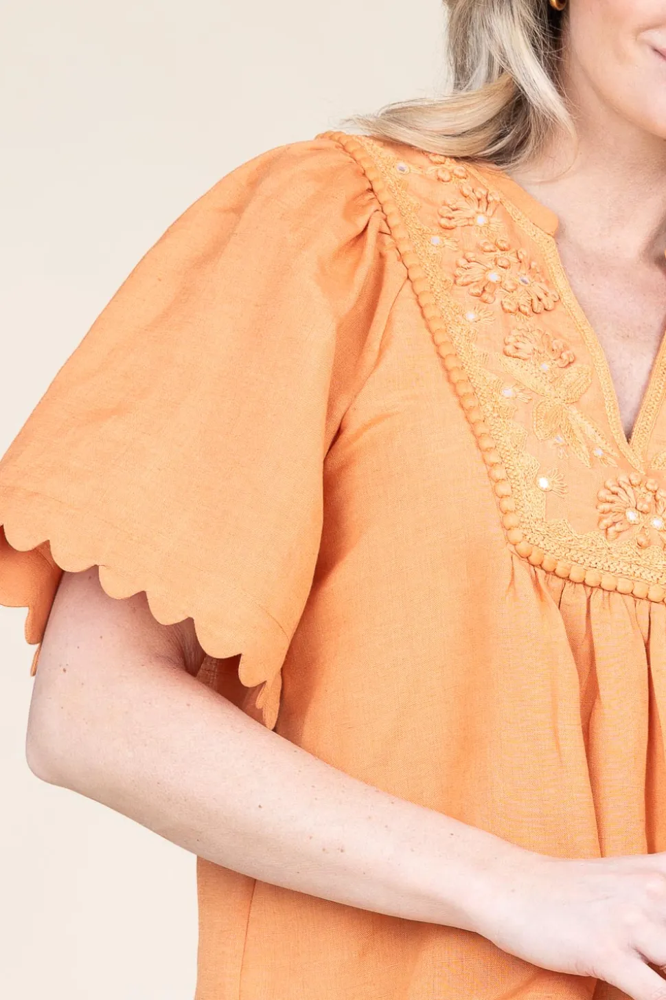 Your New Favorite Toptop With Embroidery Detailsv-Neckshort Flared Sleevesregular Fitcomposition55% Linen, 45% Viscosewashing Instructionsdry Cleaning