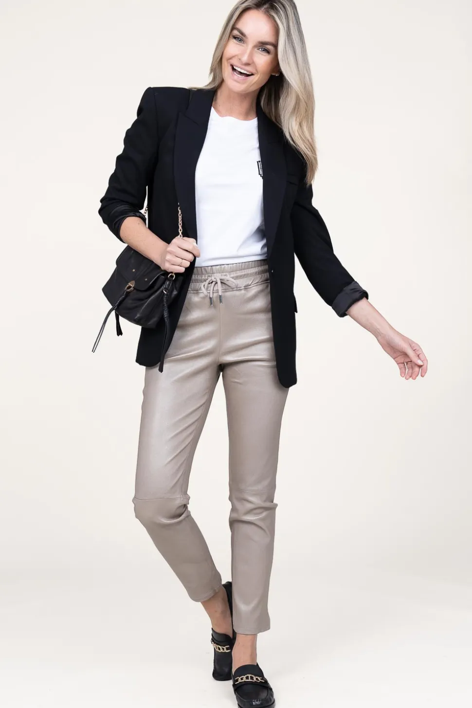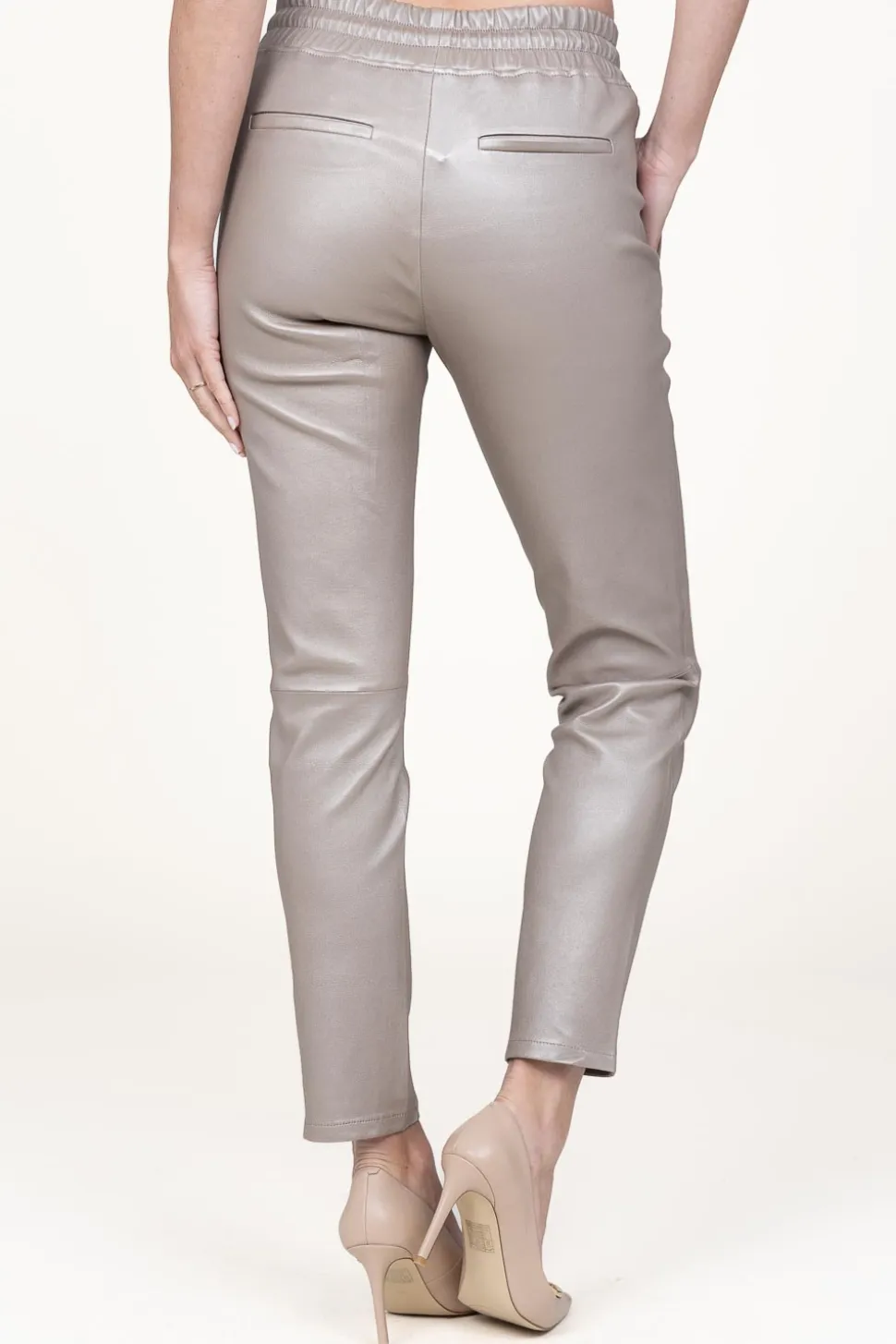 Best STUDIO AR Leather Stretch Jogger Naomi | Taupe Metallic… | | Little Soho