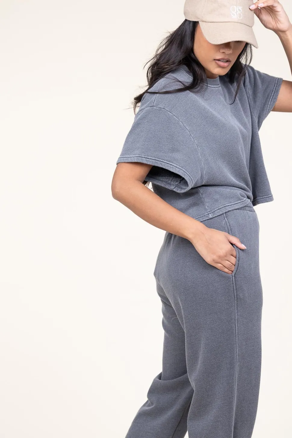 A True Essentialcropped Washed Soft Sweaterround Neckshort Sleevesfleece On Insidepart Of A Matching Setboxy Fitcomposit…