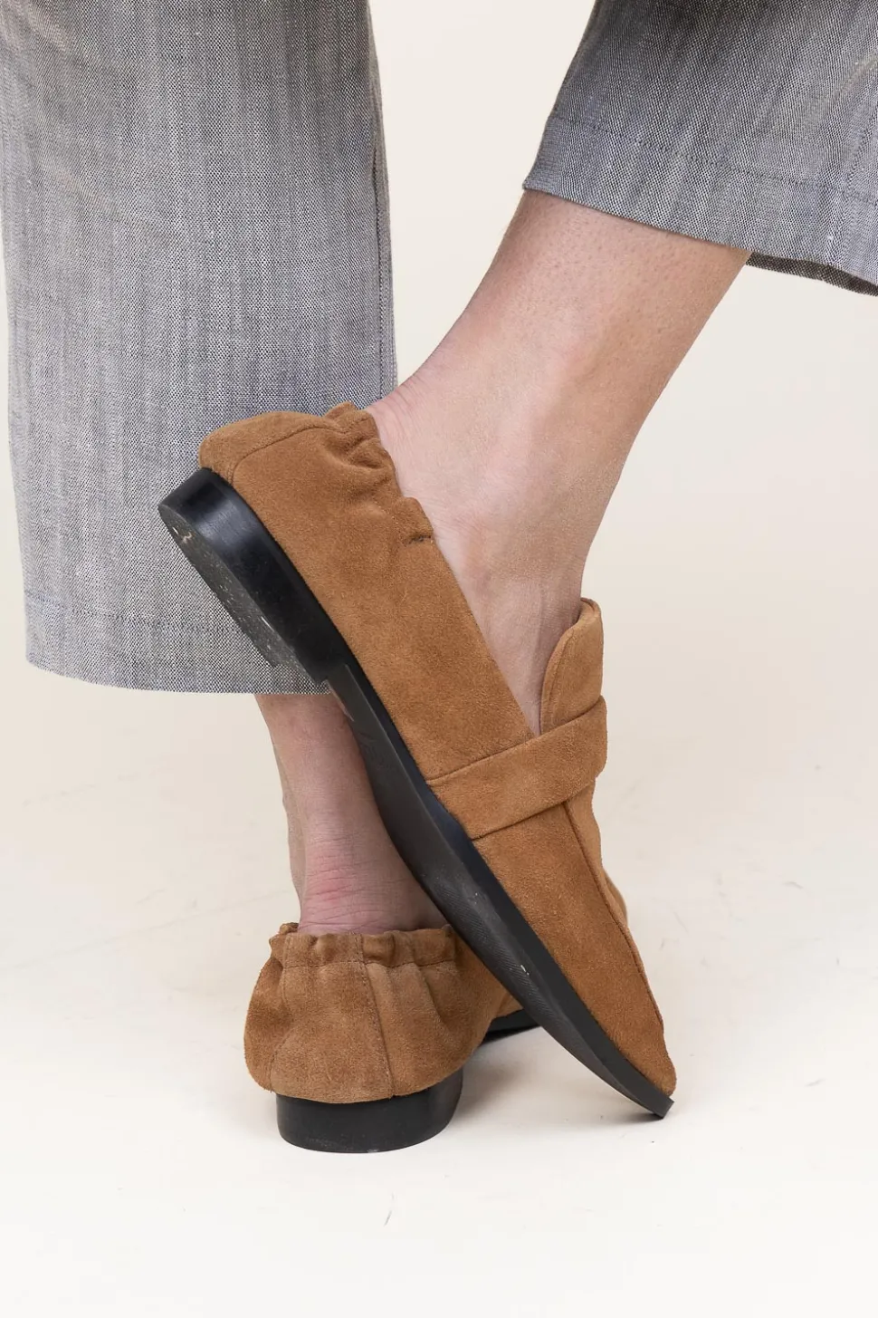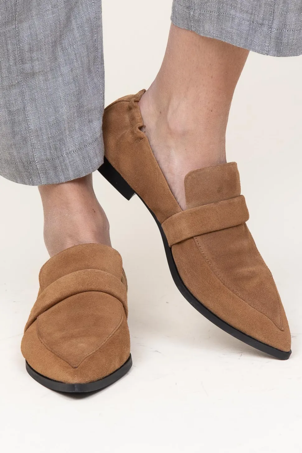 A True Essentialsuede Loaferpointy Noseelastic Backcompositionleatherdimensionsheel Height: 2 Cm