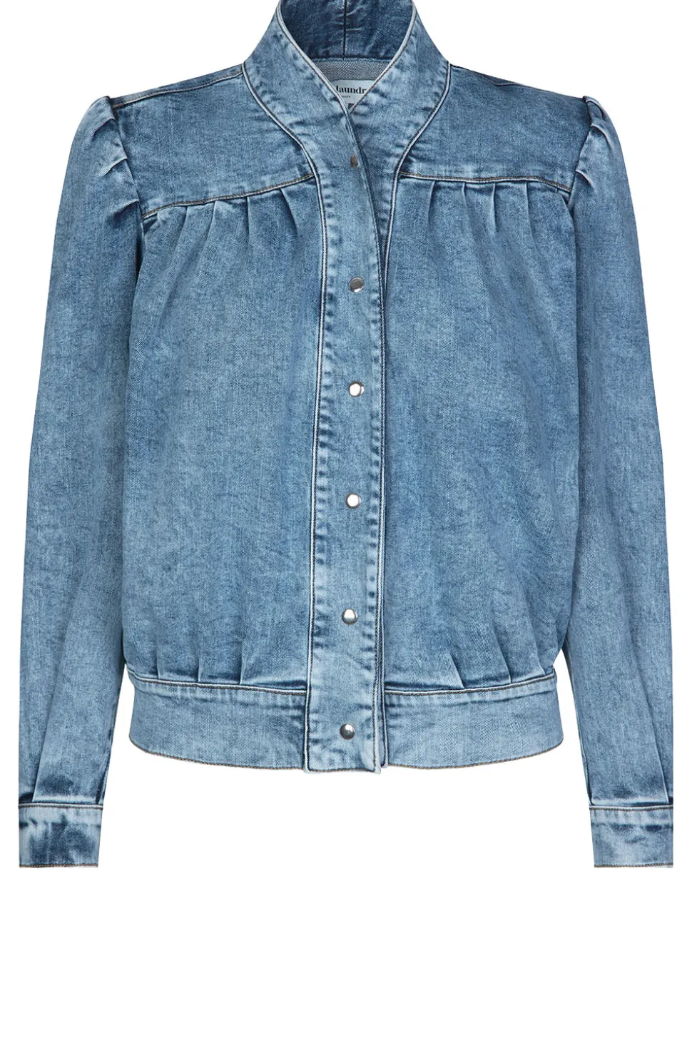 Denim Is Always A Good Idea!Denim Jacket With Puffed Sleevesround Necklong Puffed Sleeves With Cuffstwo Slanted Pocketsc…