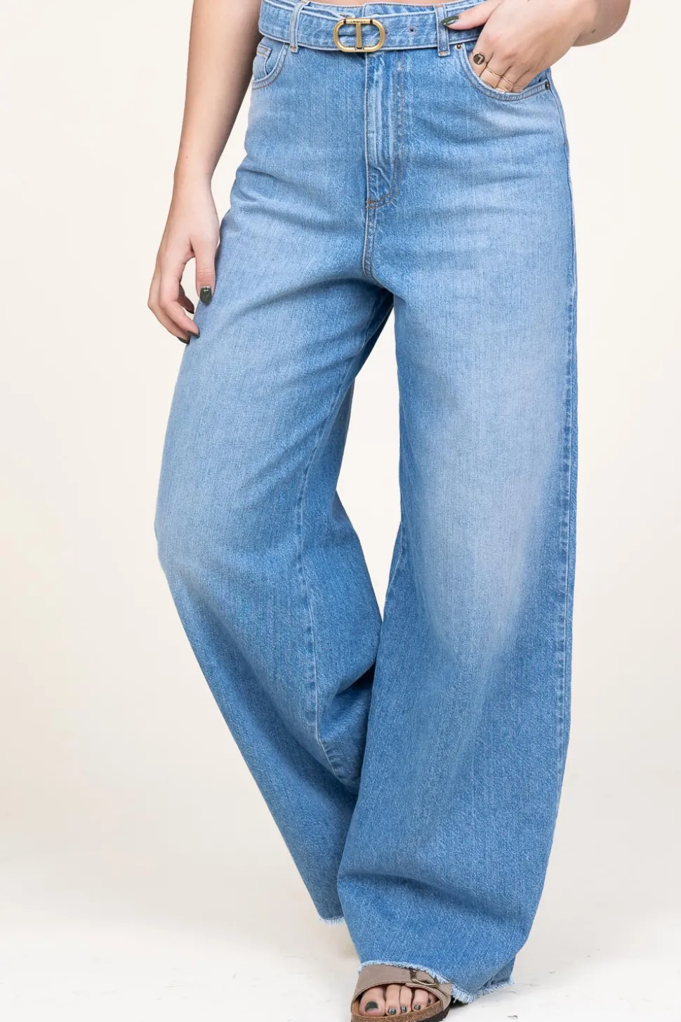 Denim Is Always A Good Idea!Wide Leg Soft Jeanscloses With Buttons And Hidden Zipper5-Pocket Modelbelt With Gold Colored…