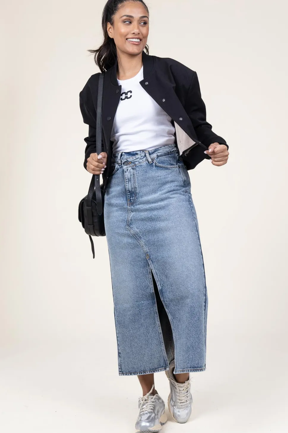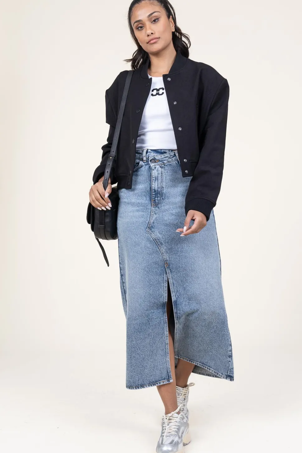 A True Essentialnon-Stretch Denim Skirtcloses With Button &Amp;Amp; Hidden Zipper5-Pocket Modelsplit On The Frontasymmetrical Frontpart Of A Matching Setregular Fitcomposition100% Cottonwashing Instructionsmachine Wash 40 Degrees