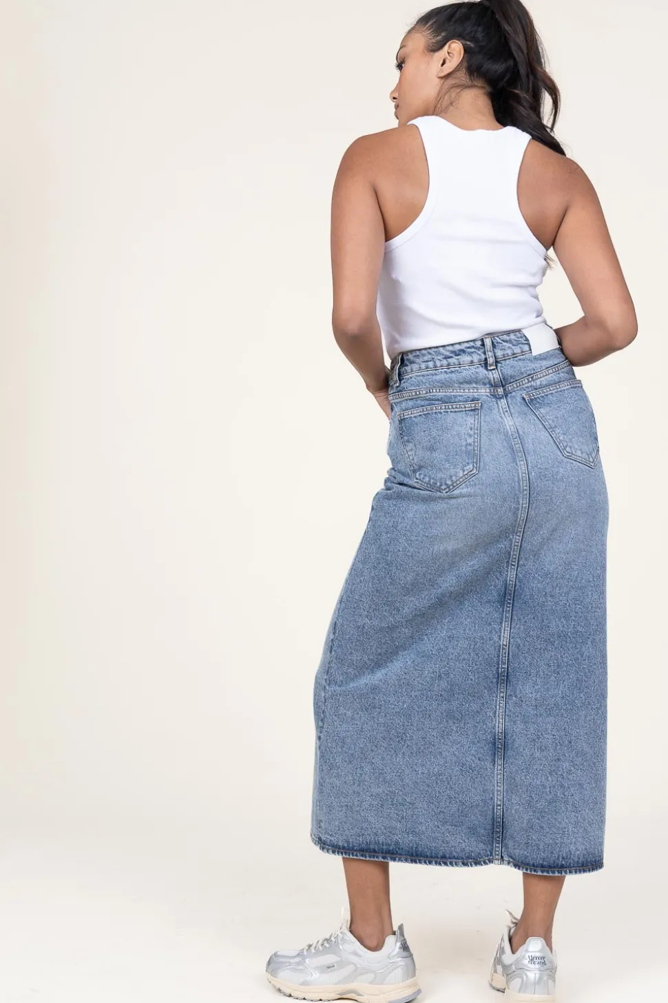 A True Essentialnon-Stretch Denim Skirtcloses With Button &Amp;Amp; Hidden Zipper5-Pocket Modelsplit On The Frontasymmet…