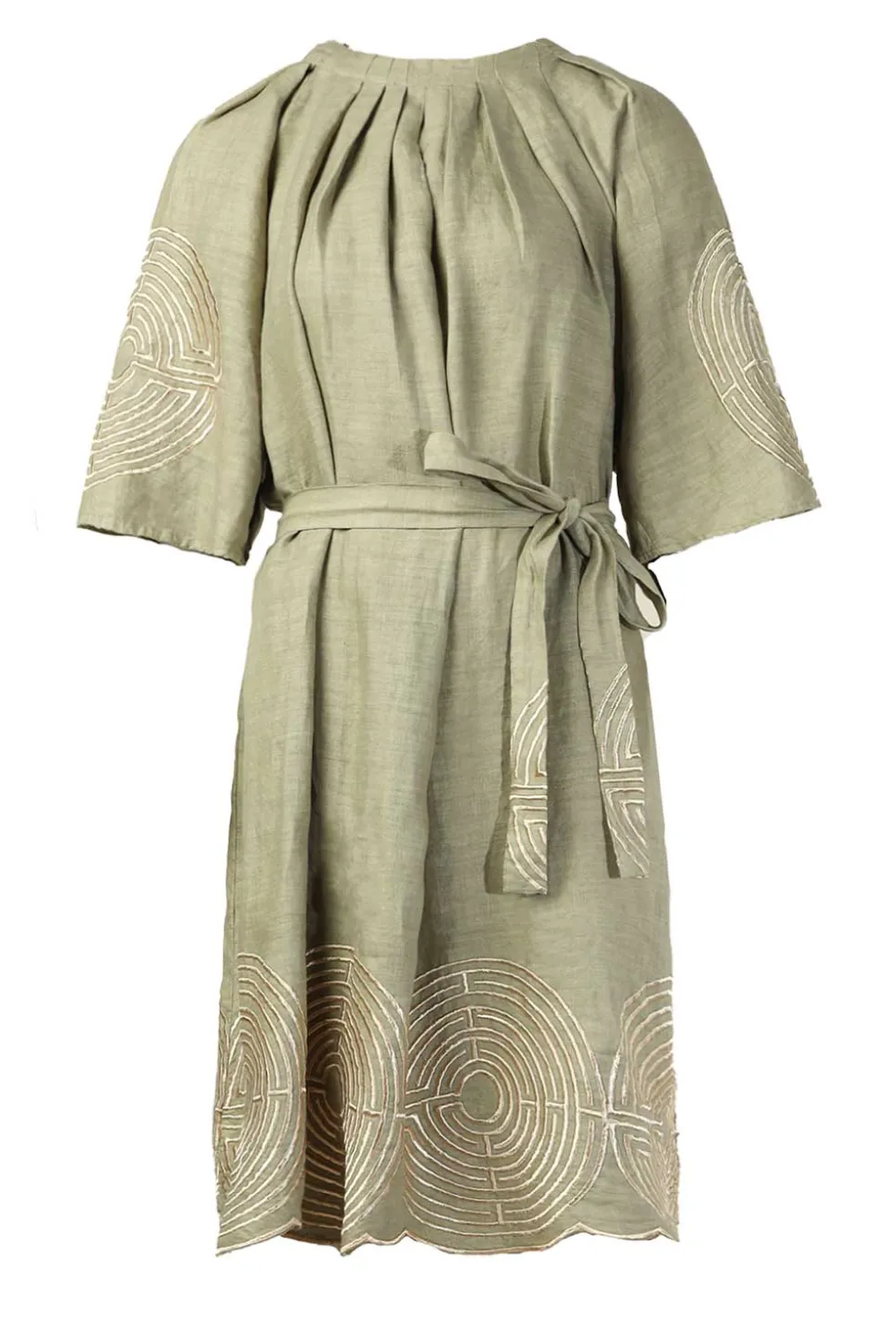 Eyecatcher Alert!Dress With Labyrinth Embroideryround Neckshort Flared Sleevesmidi Lengthbow Beltregular Fitcomposition100% Linenembroidery: 100% Polyesterwashing Instructionshand Wash