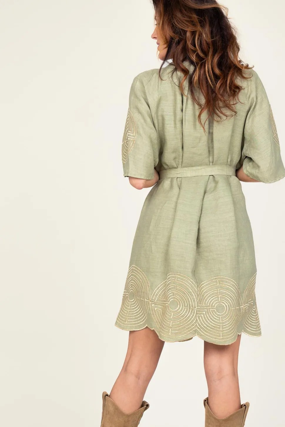 Clearance Greek Archaic Kori Dress With Labyrinth Embroidery Zoe | Green… | | Little Soho