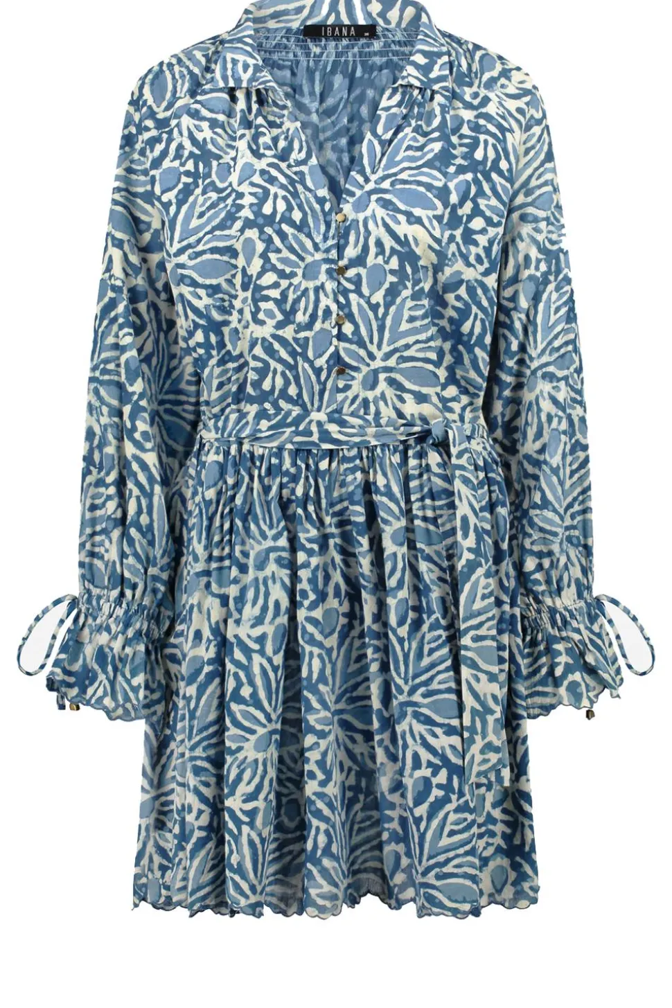 Eyecatcher Alert!Cotton Dress With Print And Tie Detailshirt Collarlong Sleeves With Cuffsmini Lengthbow Belt At Waistelastic Detail At Backcloses With Buttonsregular Fitcompositionwashing Instructions