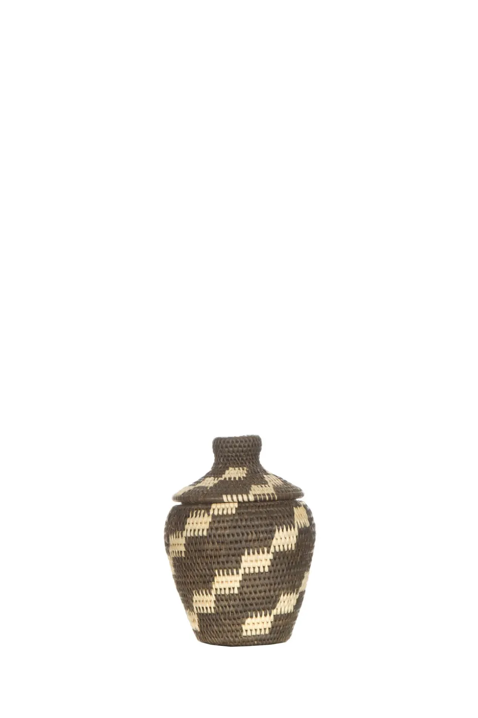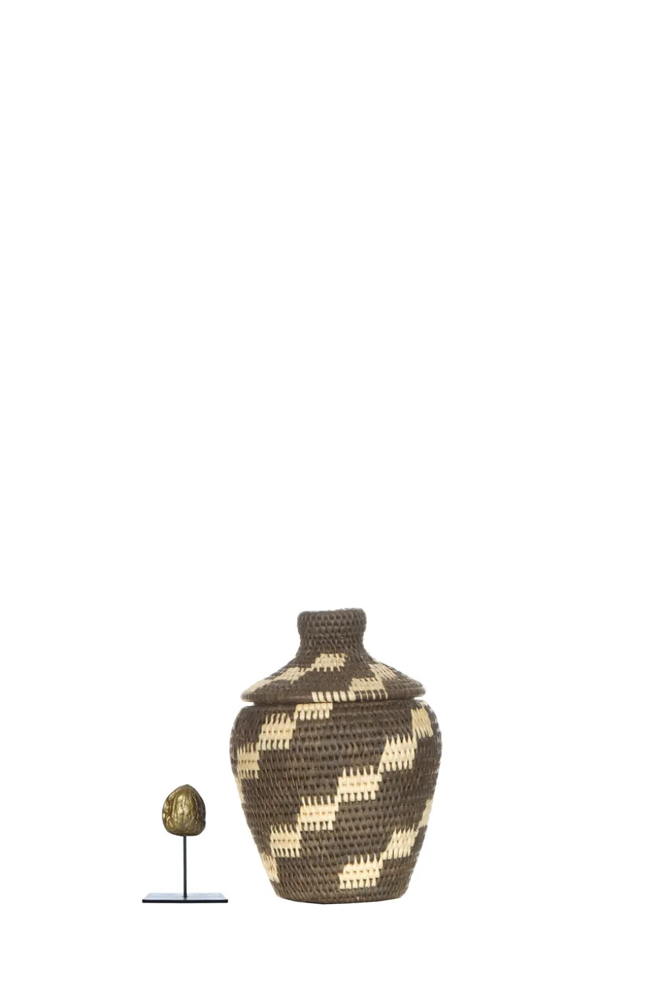 This Unique Basket By Little Soho Comes In A Black &Amp; White Pattern And Is Handmade Of Rattan. Thanks To Its Neutral Colours This Stylish Home Accessory Can Be Combined With Other Interior Items Easily. Hand Made Of Woven Rattan Has A Diagonal Block Pattern Comes With A Lid Material: Rattan Height: 22 Cm, Circumference: 51 Cm